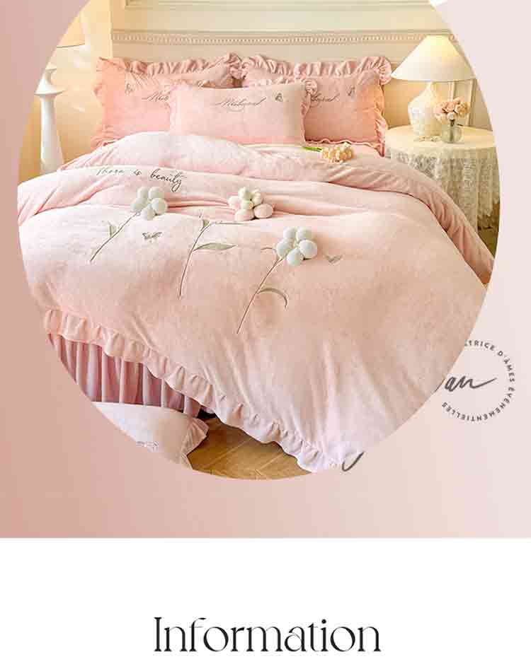 商品名称:(总)2025秋冬新款230g立体花朵全消光牛奶绒床盖四件套11斤重加厚婴儿绒法莱绒床裙款床盖款四件套