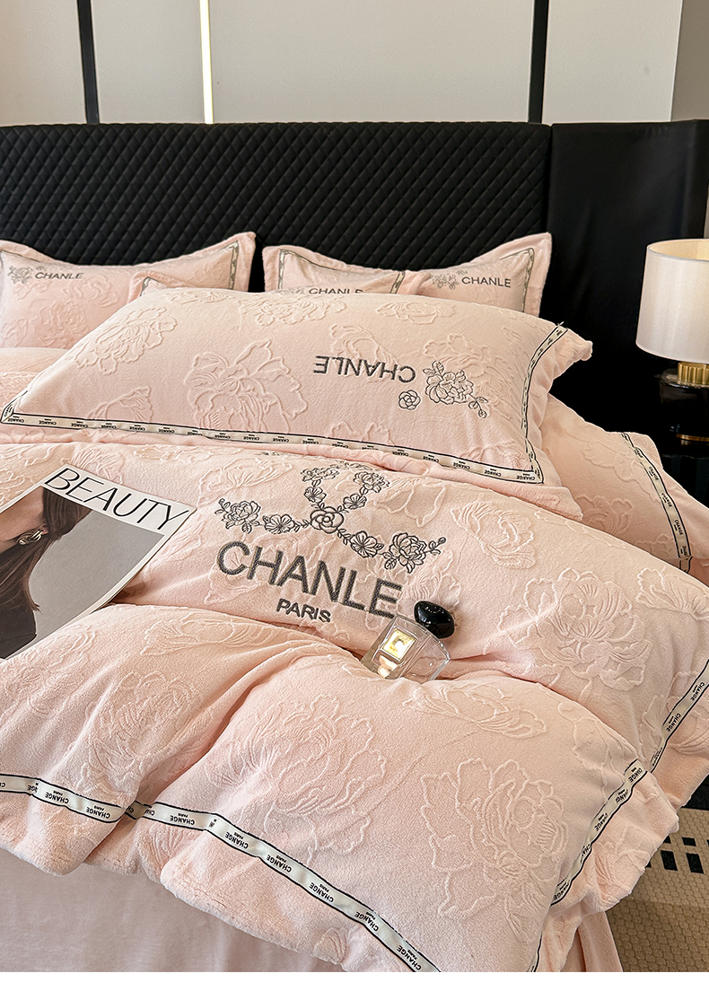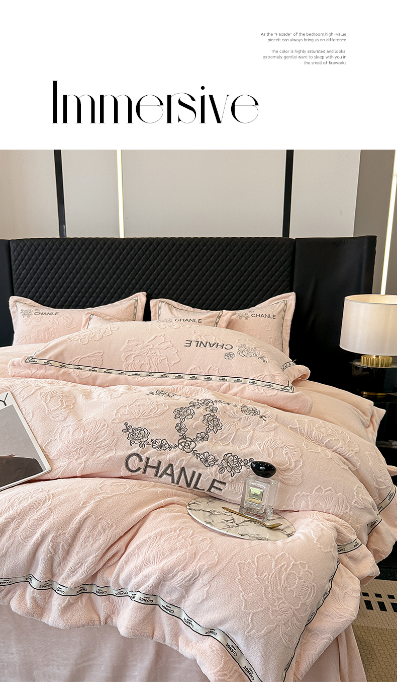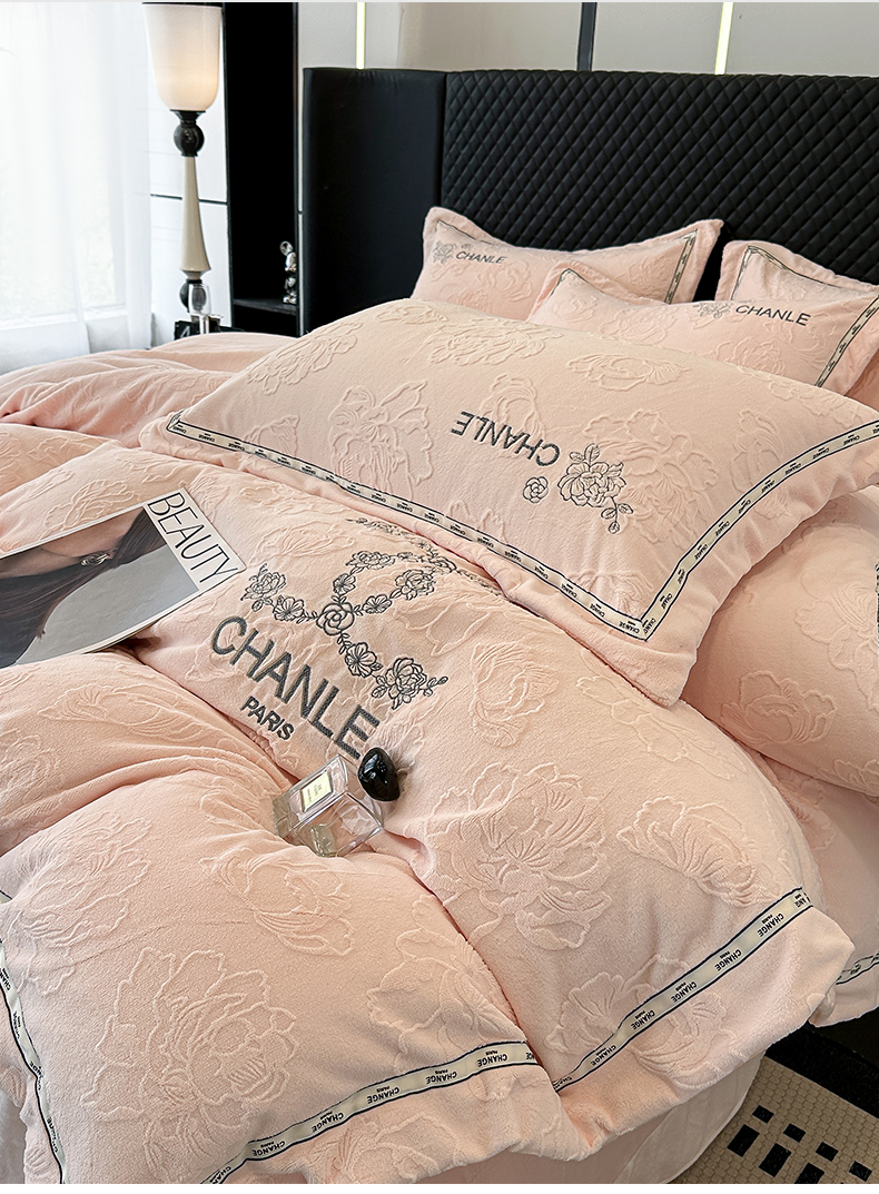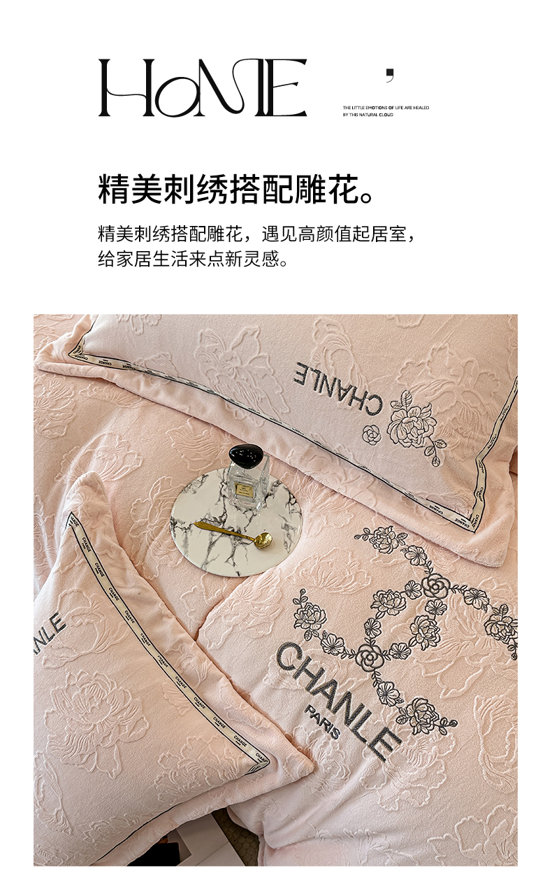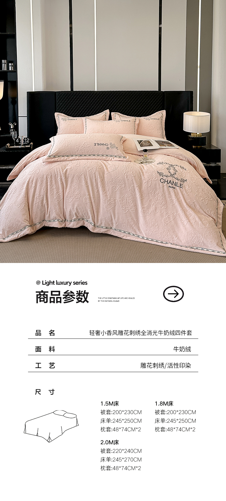 商品名称:(总)宅家居 2025新款轻奢小香风雕花刺绣全消光A类高克重牛奶绒四件套-小香牡丹