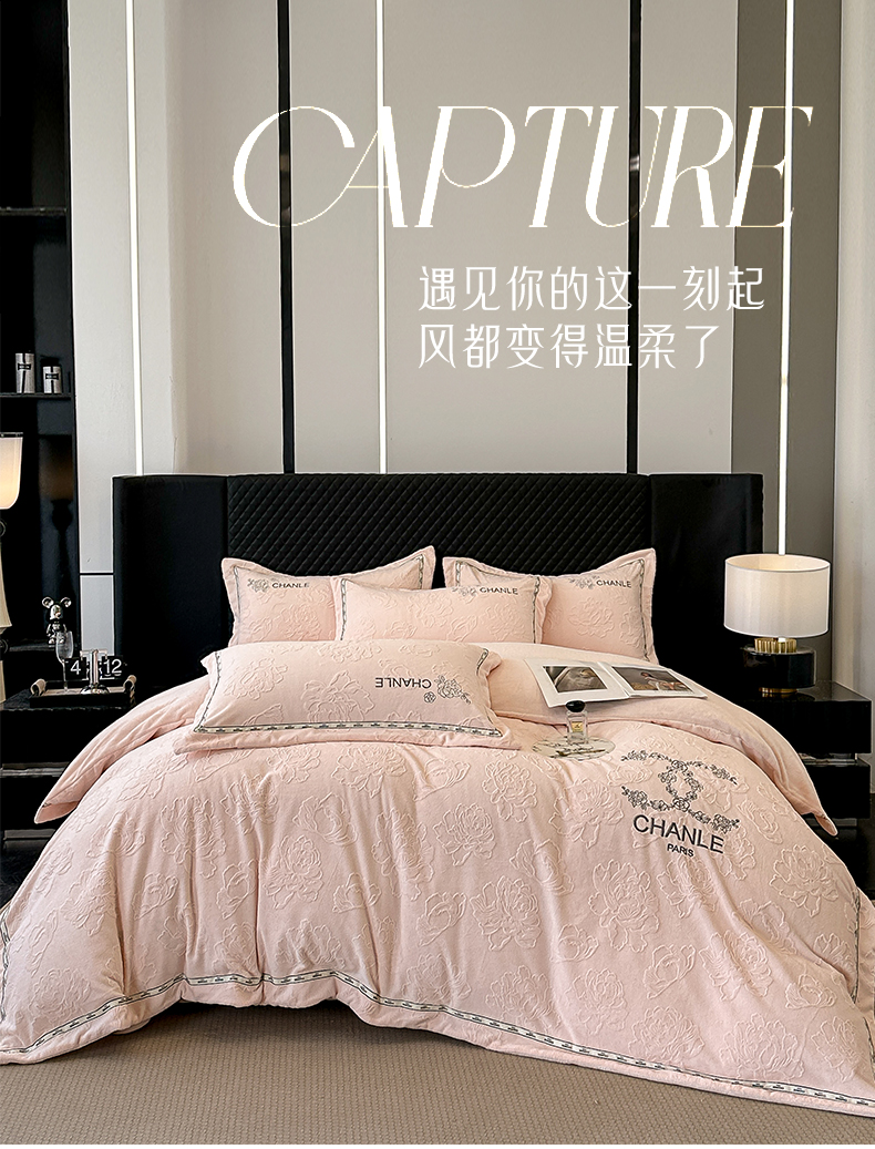 (总)宅家居 2025新款230克全消光雕花绒轻奢风立体烂花牛奶绒提花加厚保暖四件套-苏蜜绒,苏蜜绒-高贵灰,苏蜜绒-莫松绿,苏蜜绒-雪桃粉