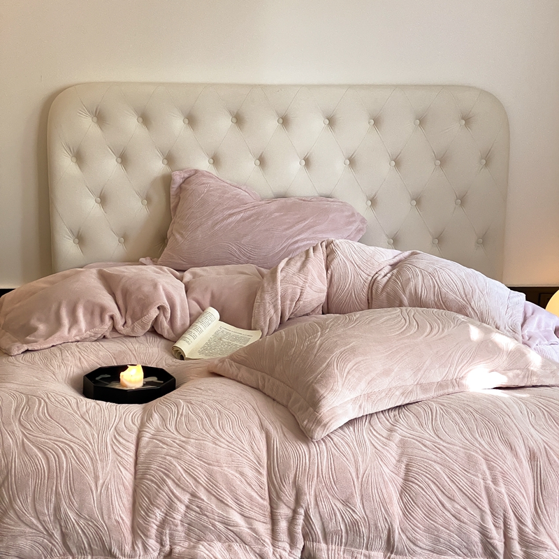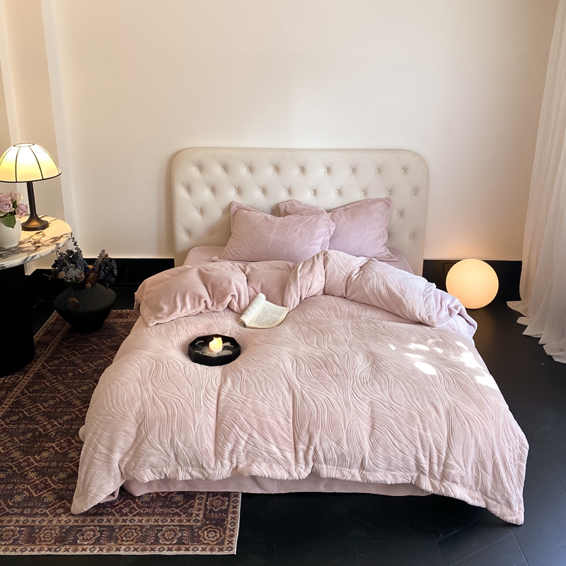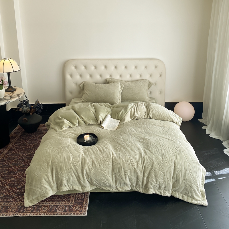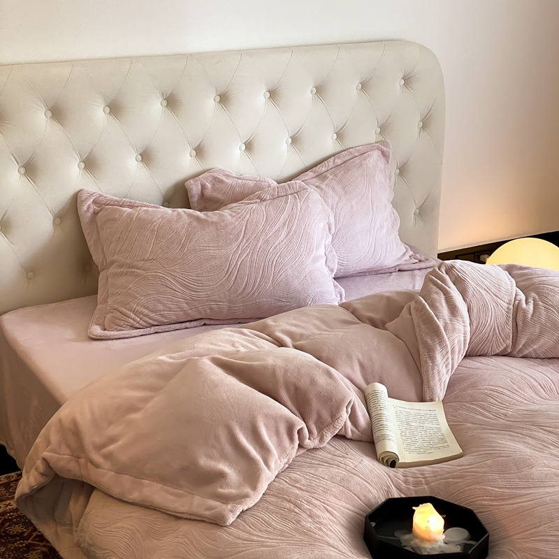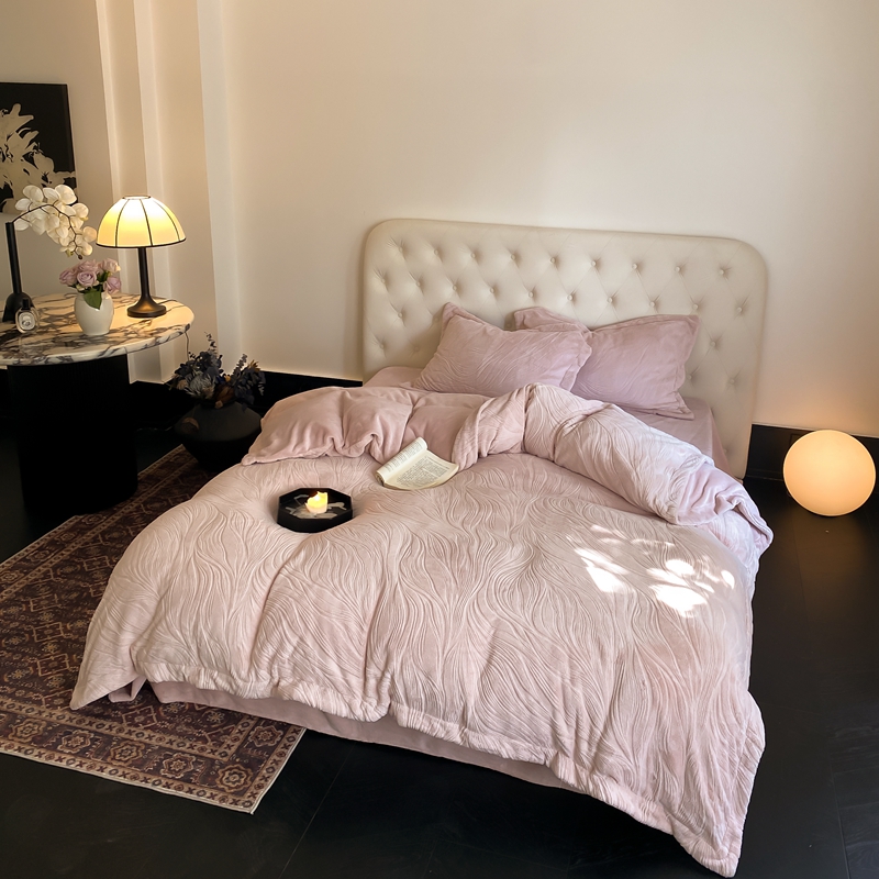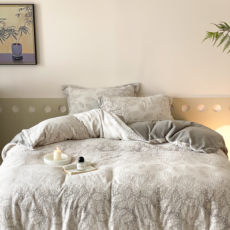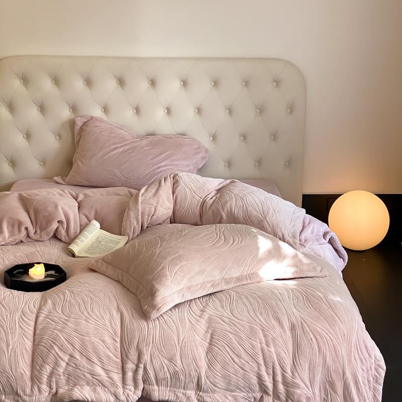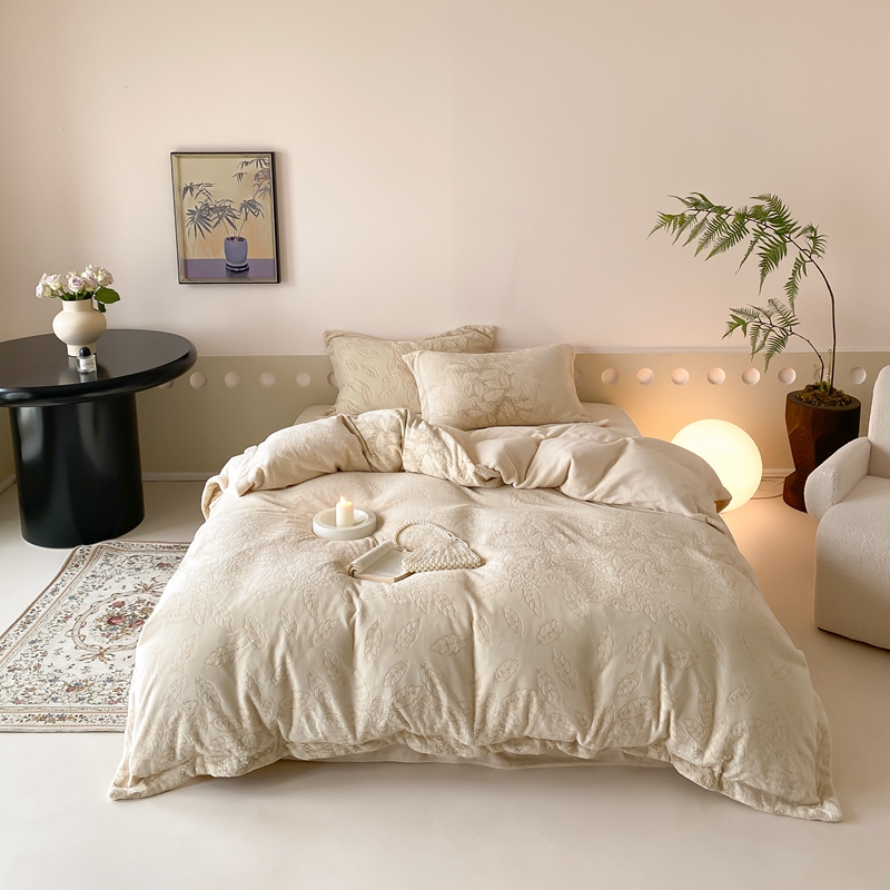(总)旷野 2024新款双色提花雕花牛奶绒四件套