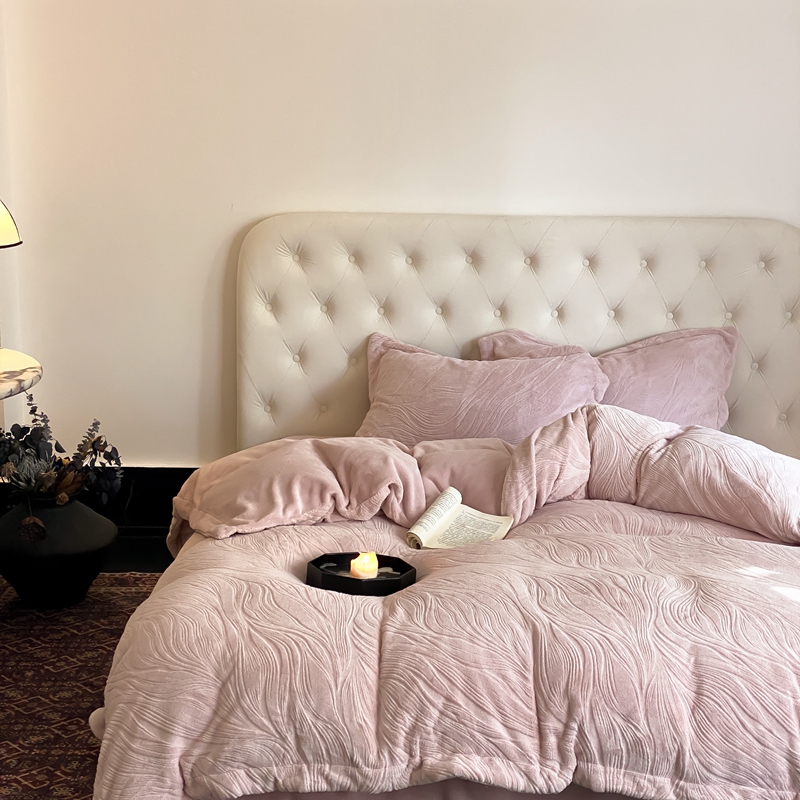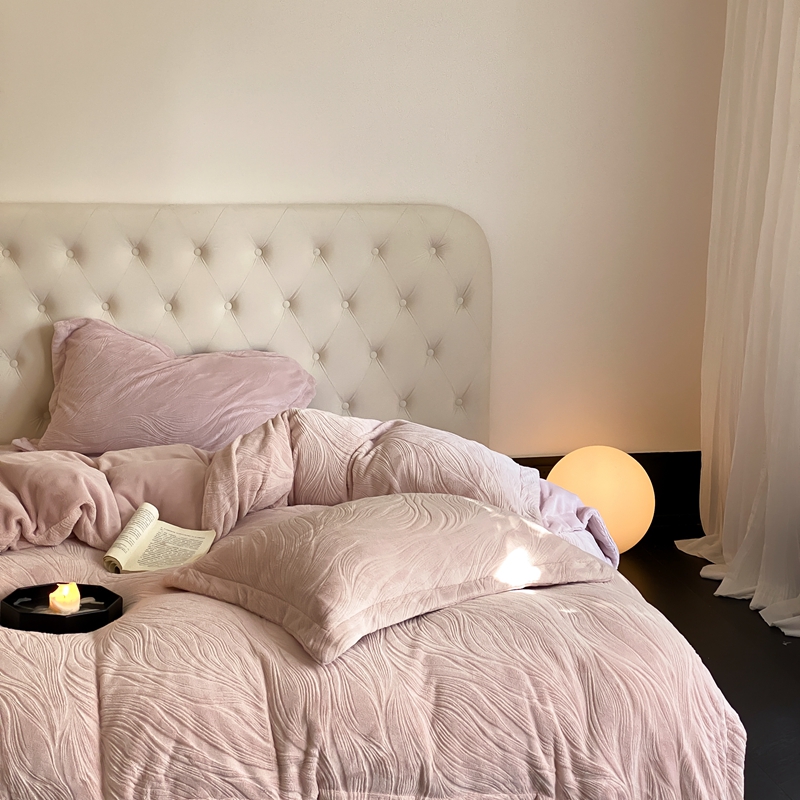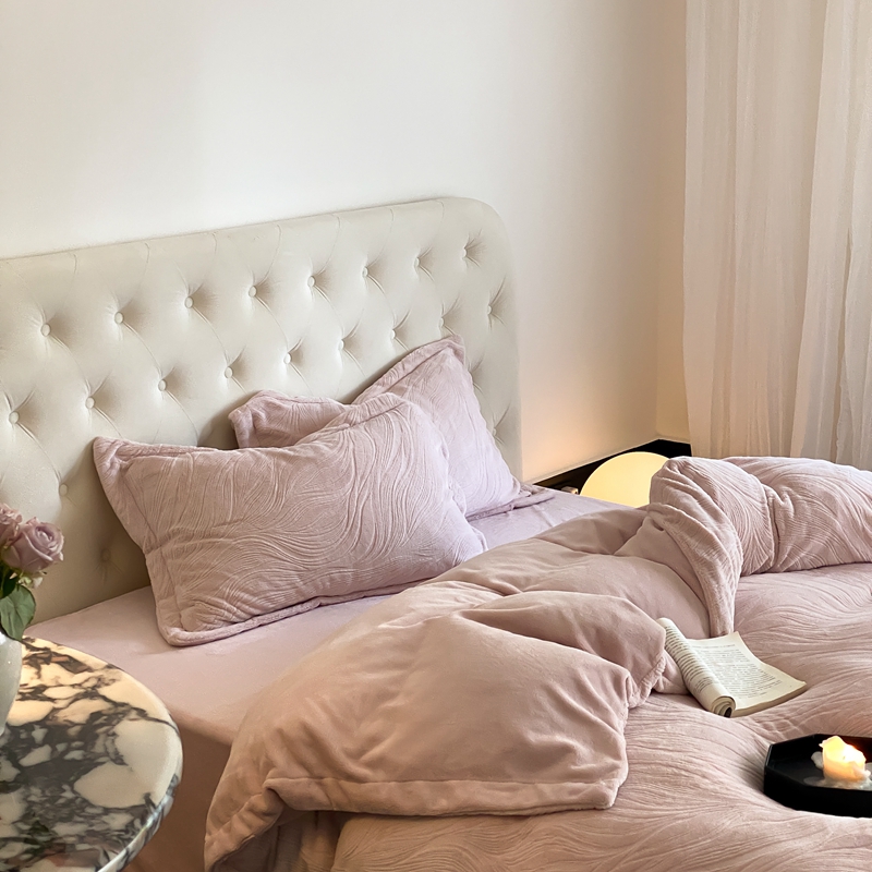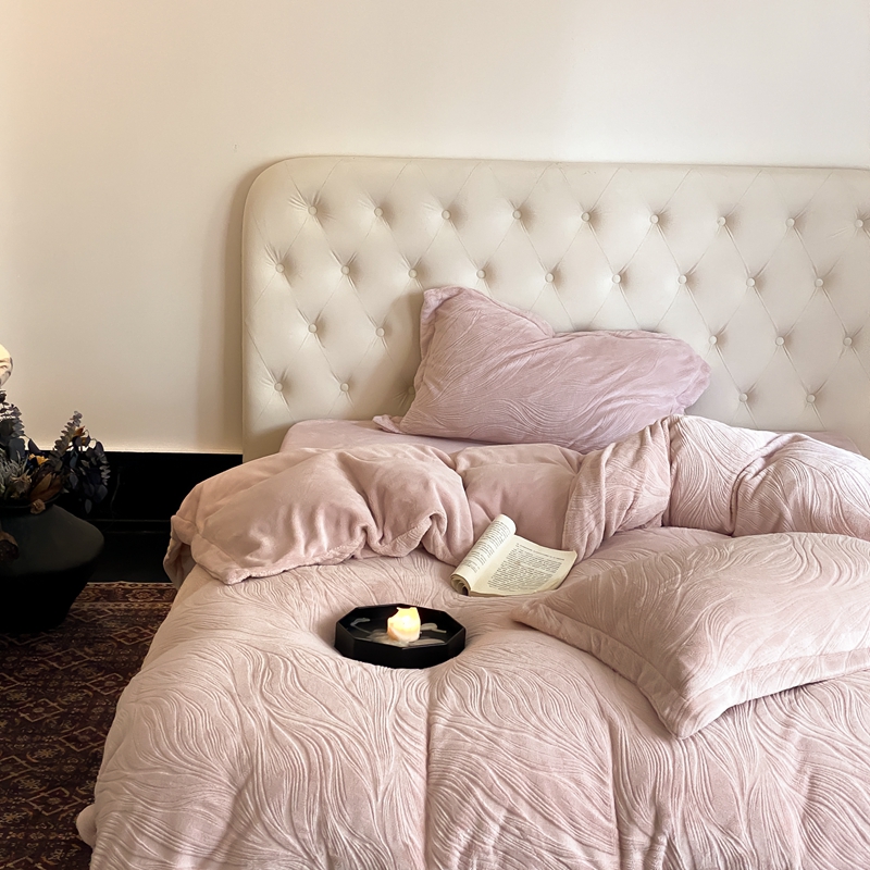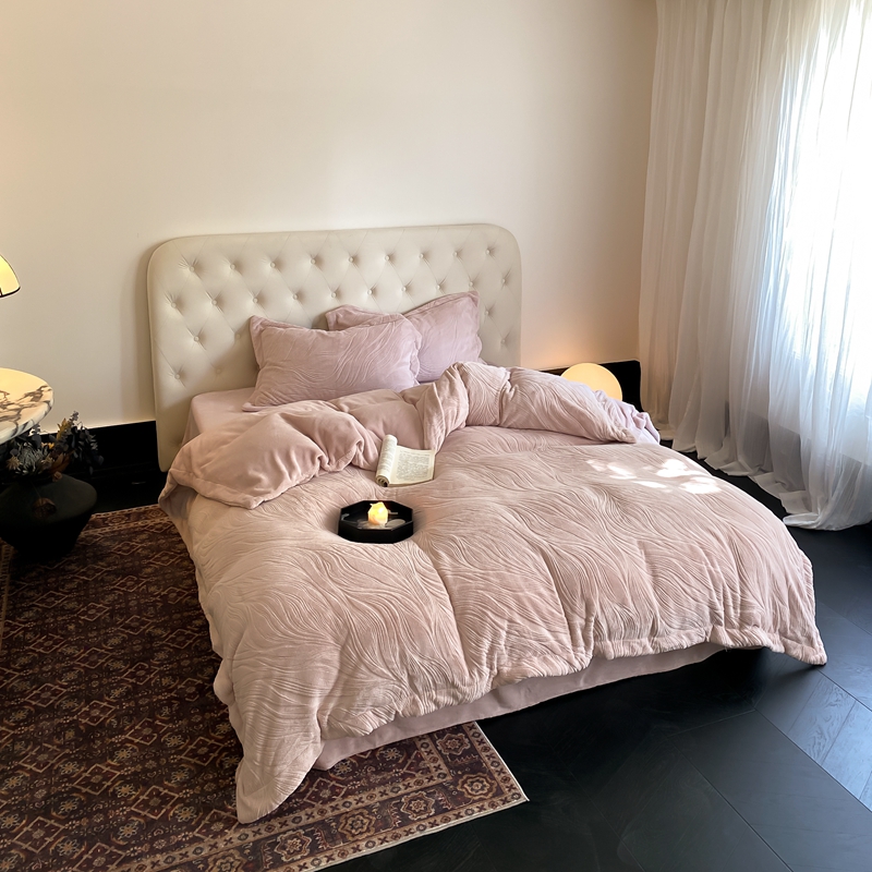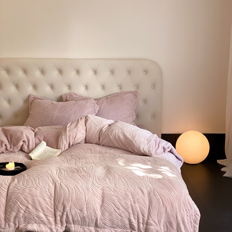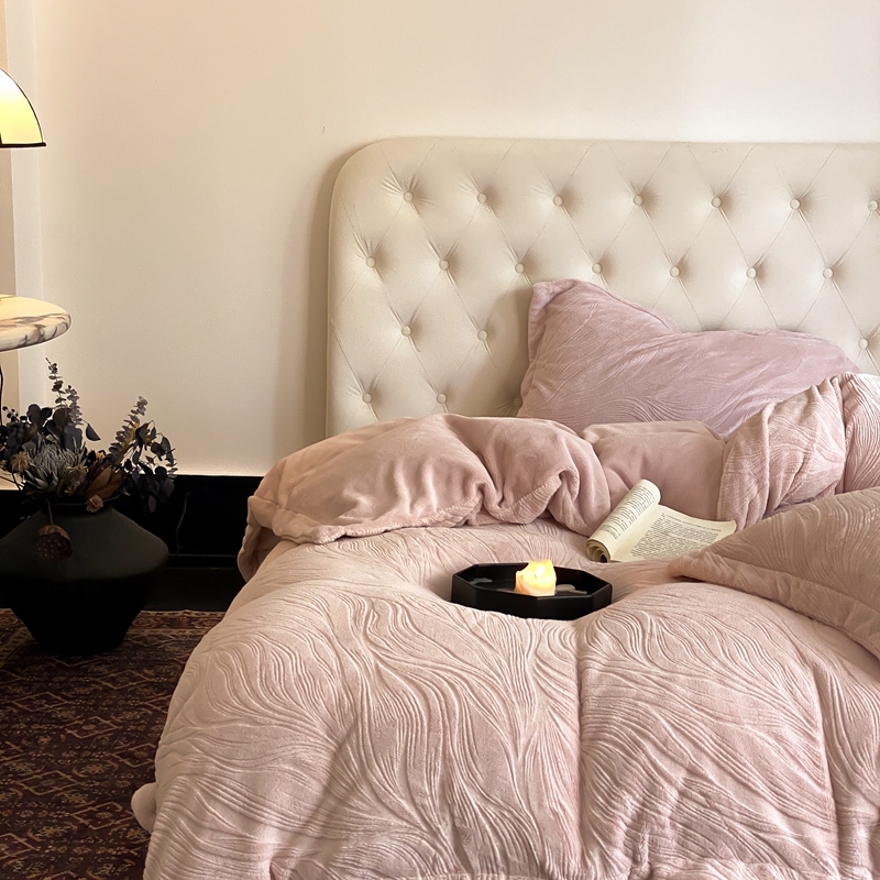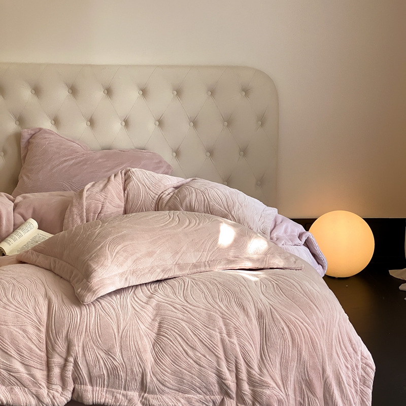 (总)旷野 2024新款双色提花雕花牛奶绒四件套