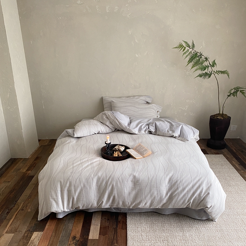 商品名称:旷野 2024新款全棉色织大提花磨毛四件套 岛屿-灰