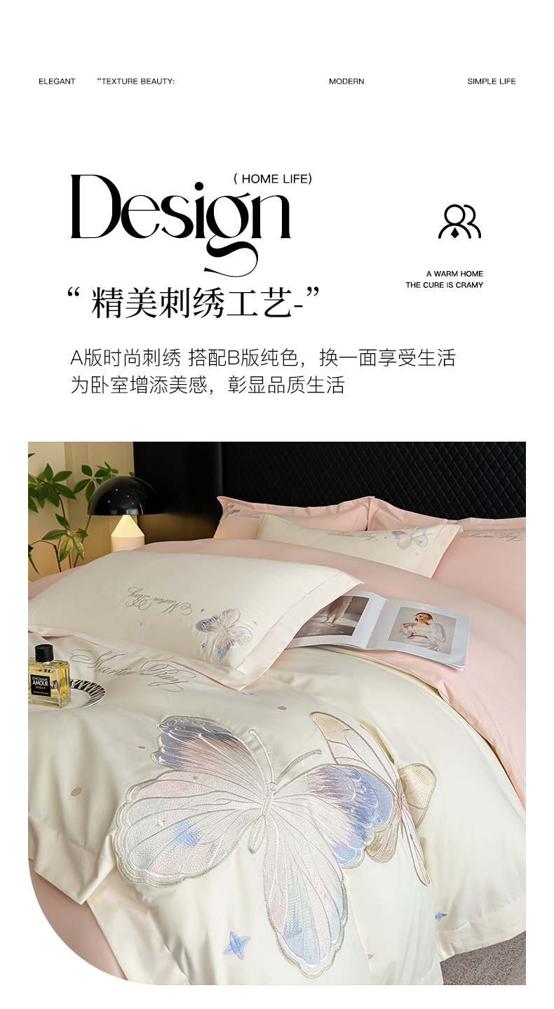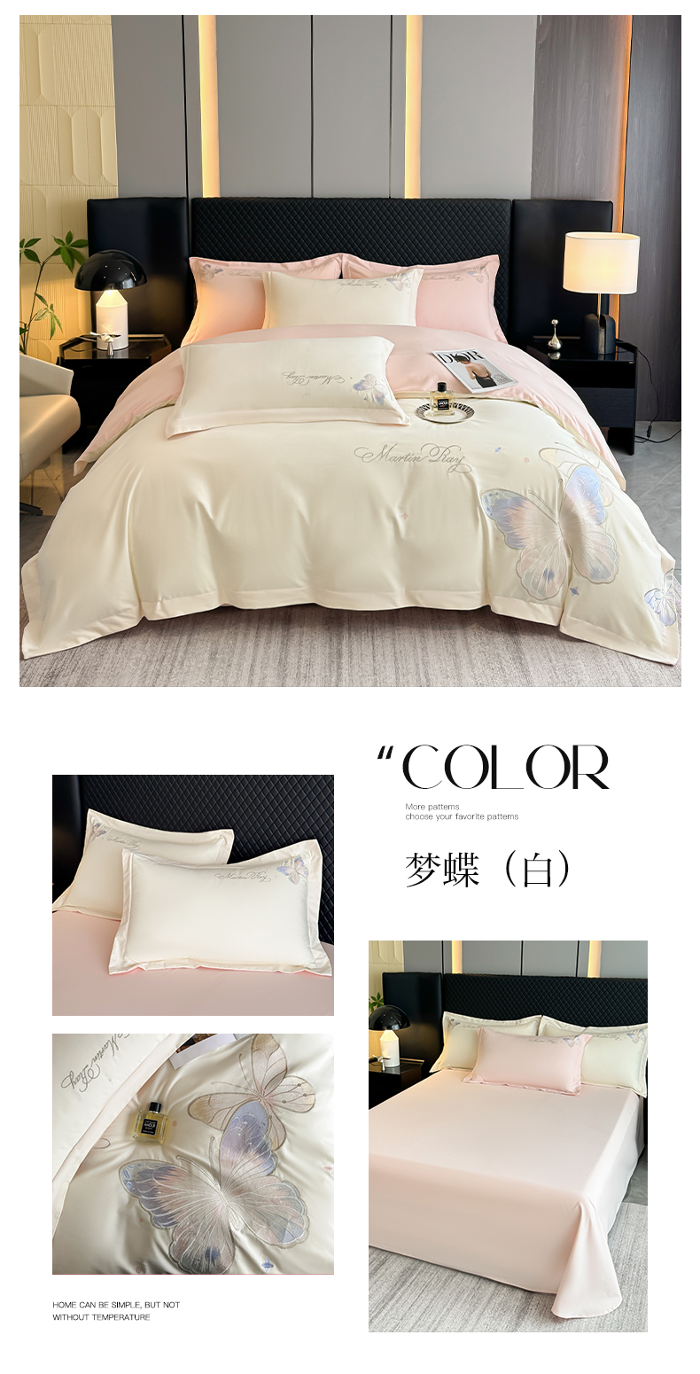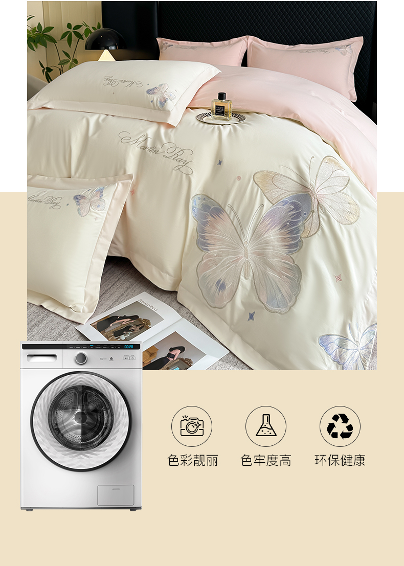 (总)理想家家纺 理想家家纺 2025新款云朵棉水洗真丝刺绣四件套,翩羽白,翩羽粉,翩羽蓝,翩羽绿,翩羽紫