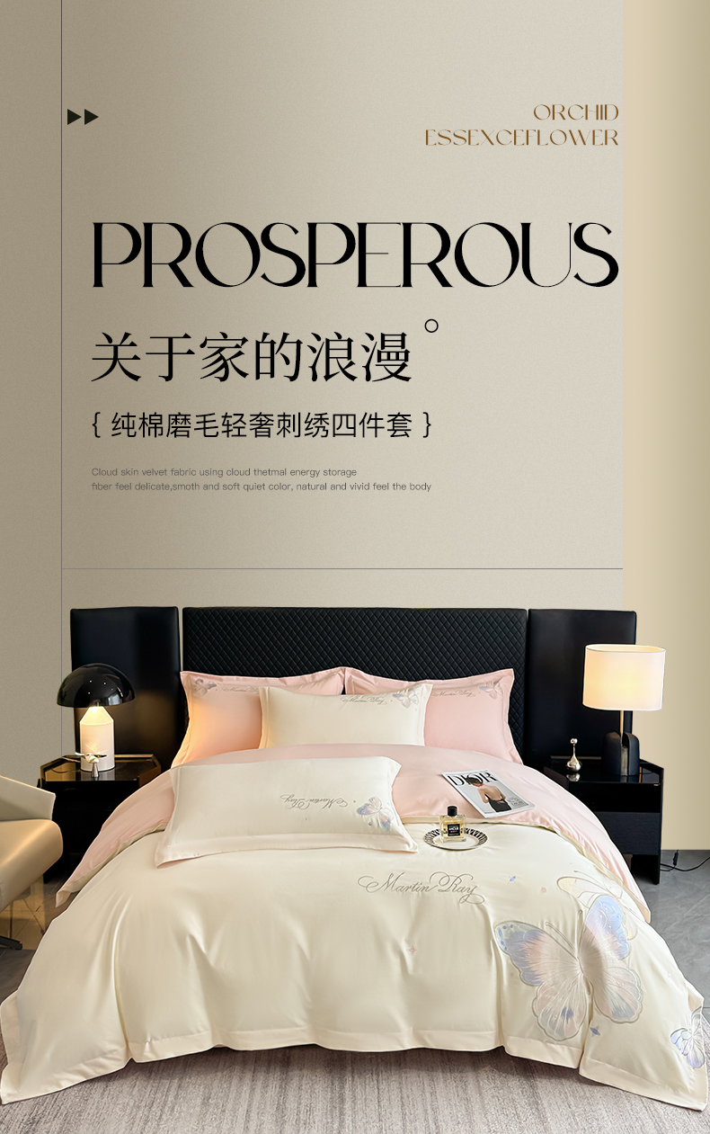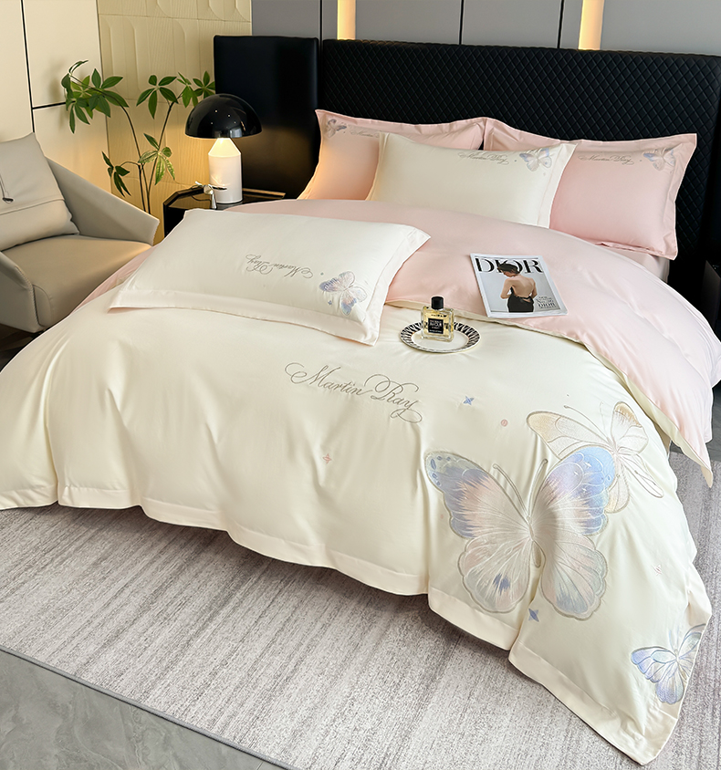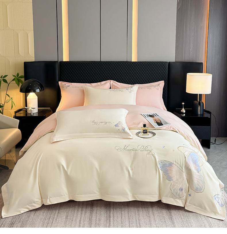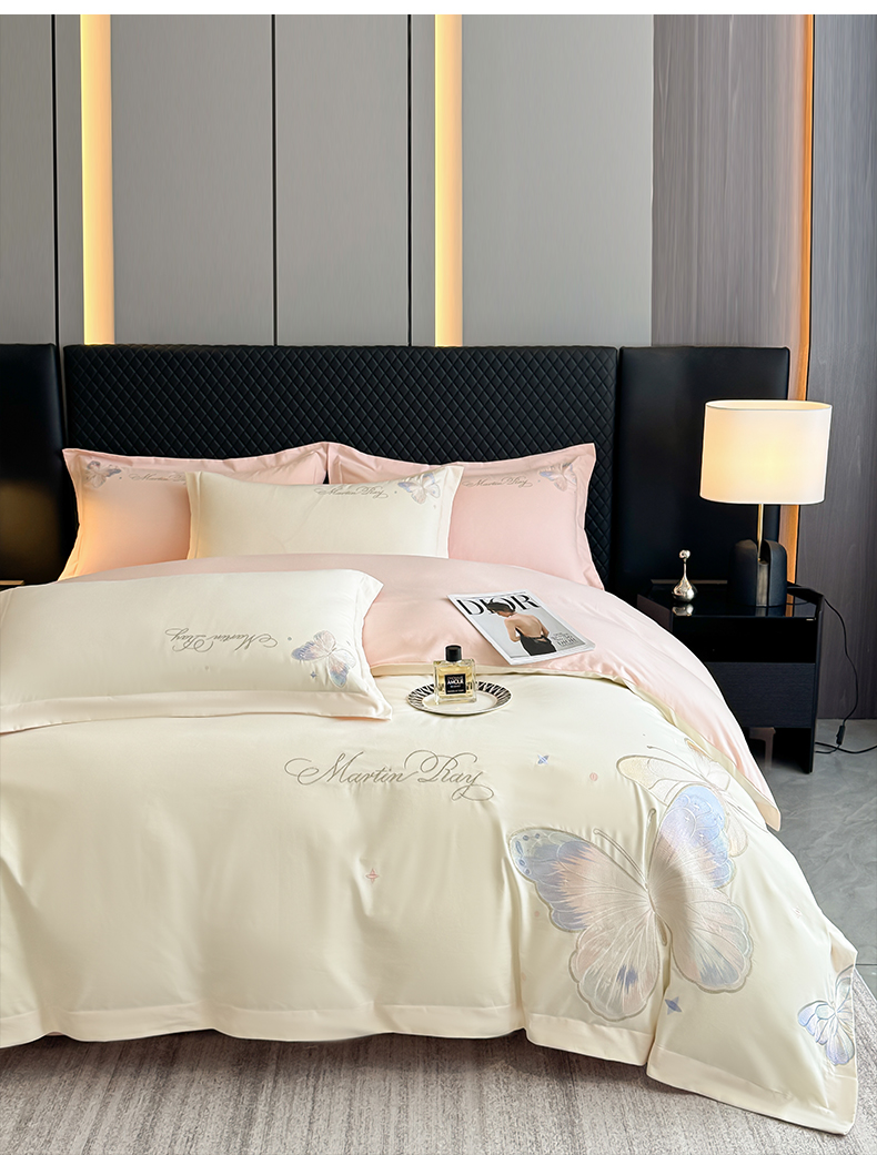 (总)理想家家纺 理想家家纺 2025新款云朵棉水洗真丝刺绣四件套,翩羽白,翩羽粉,翩羽蓝,翩羽绿,翩羽紫