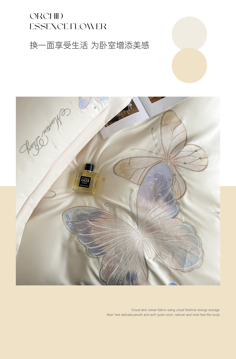 商品名称:理想家家纺 2024新款纯棉磨毛刺绣四件套-梦蝶 梦蝶-白