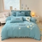 金米诺 新款韩版花边水洗棉泡泡纱四件套公主条四件套 褶皱-浅蓝,褶皱-浅蓝