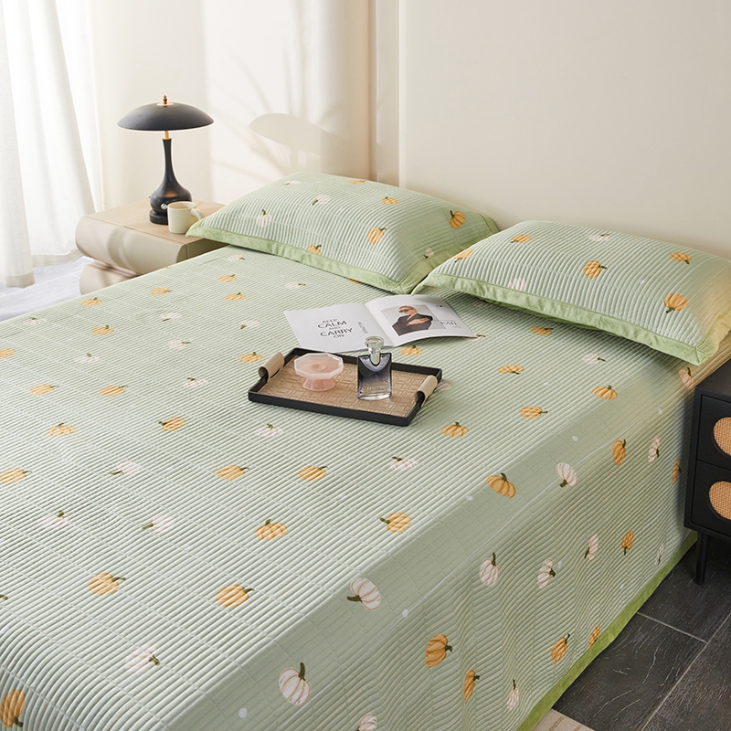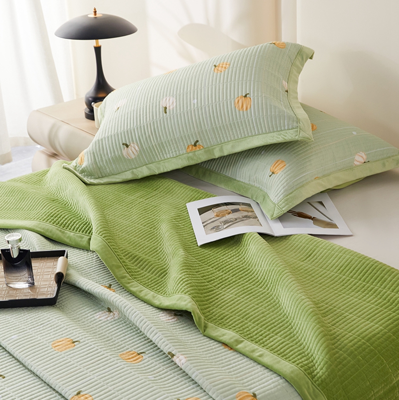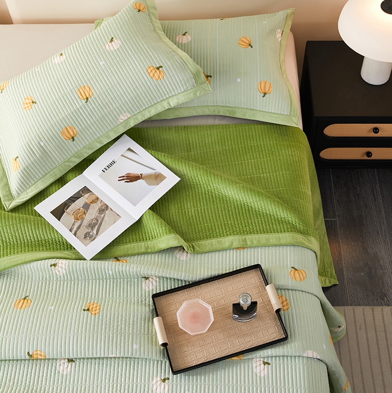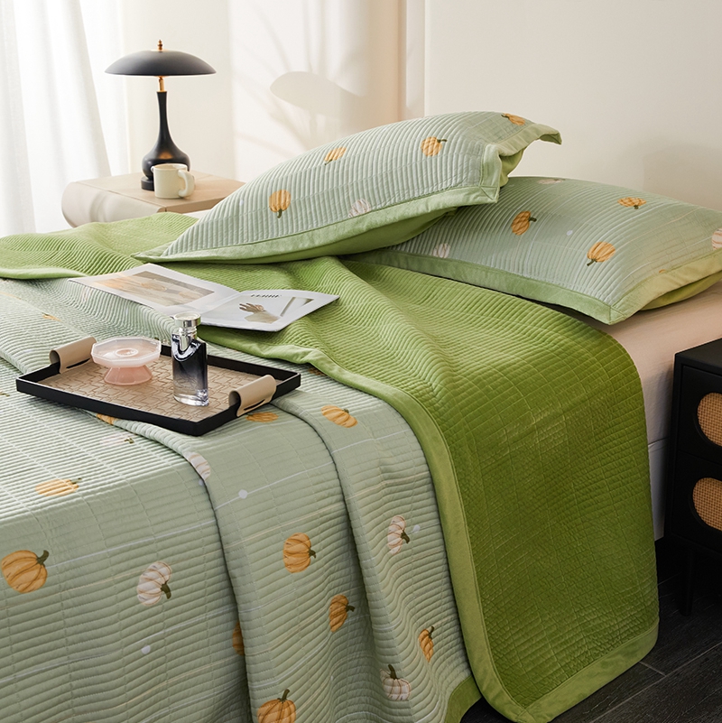 莎果家纺 2025秋冬一面天丝一面绒高温砂洗床盖三件套 小南瓜