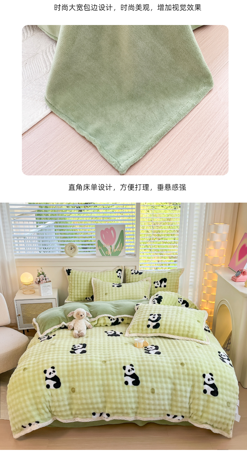 商品名称:金喜 2024新款泡泡牛奶绒四件套-欧帝莎 泡泡牛奶绒-萌兰