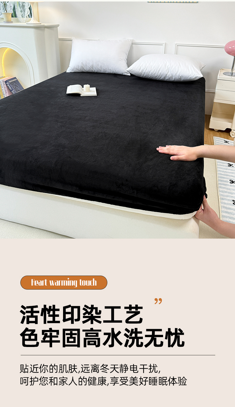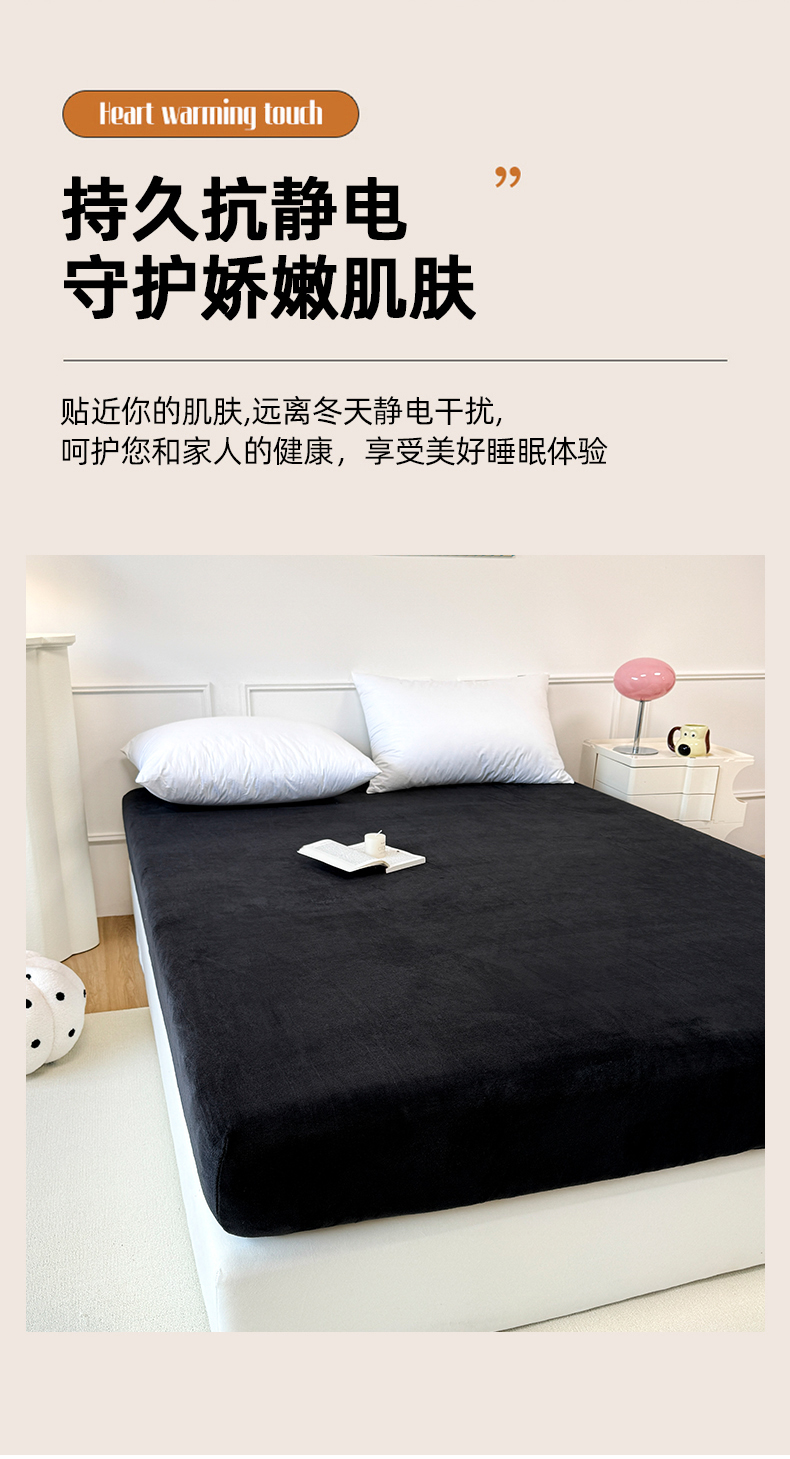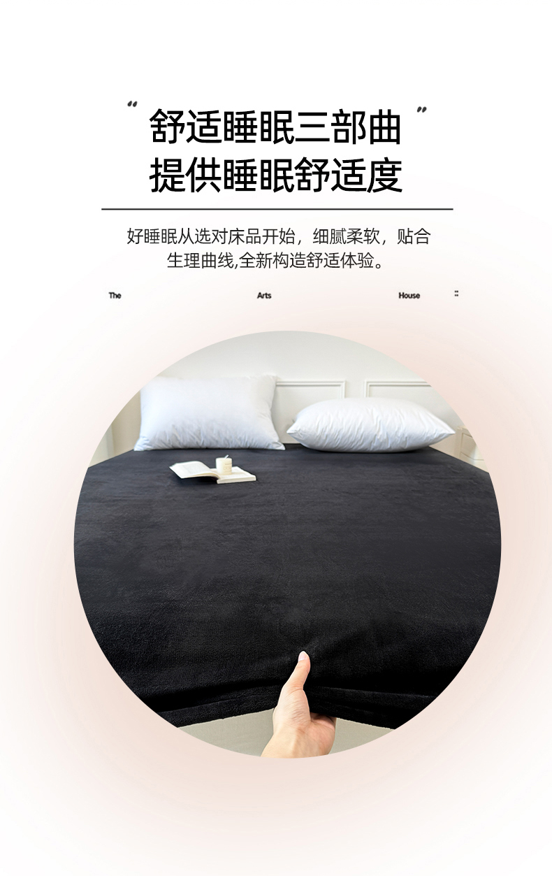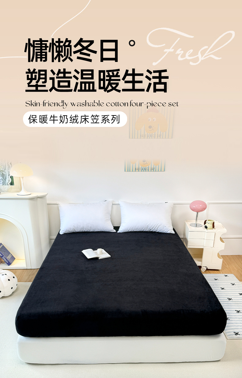 商品名称:觅妮家纺 2025新款全消光200g保暖牛奶绒纯色简约款床笠 黑灰