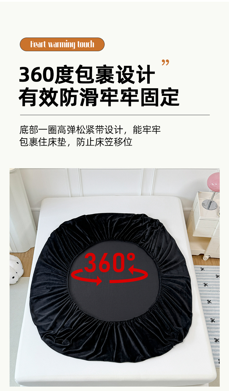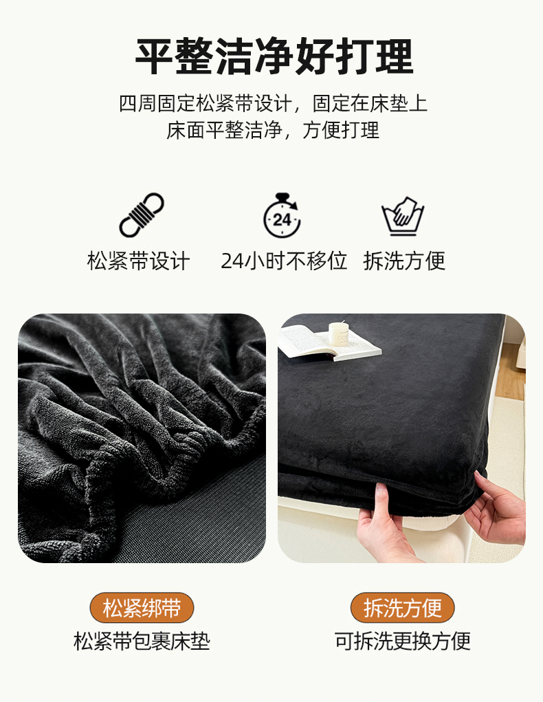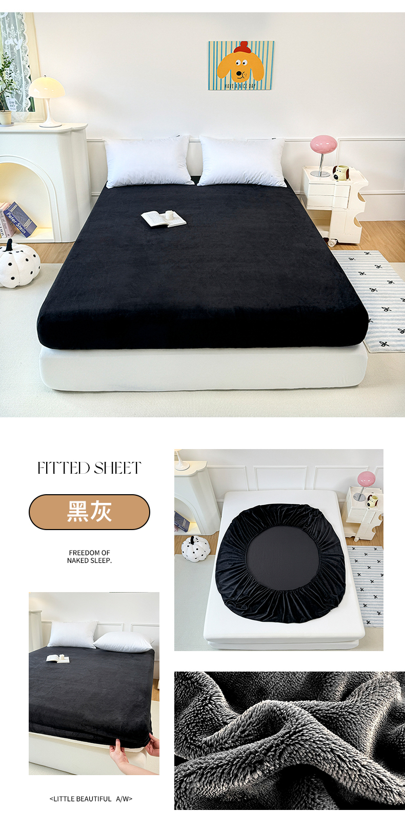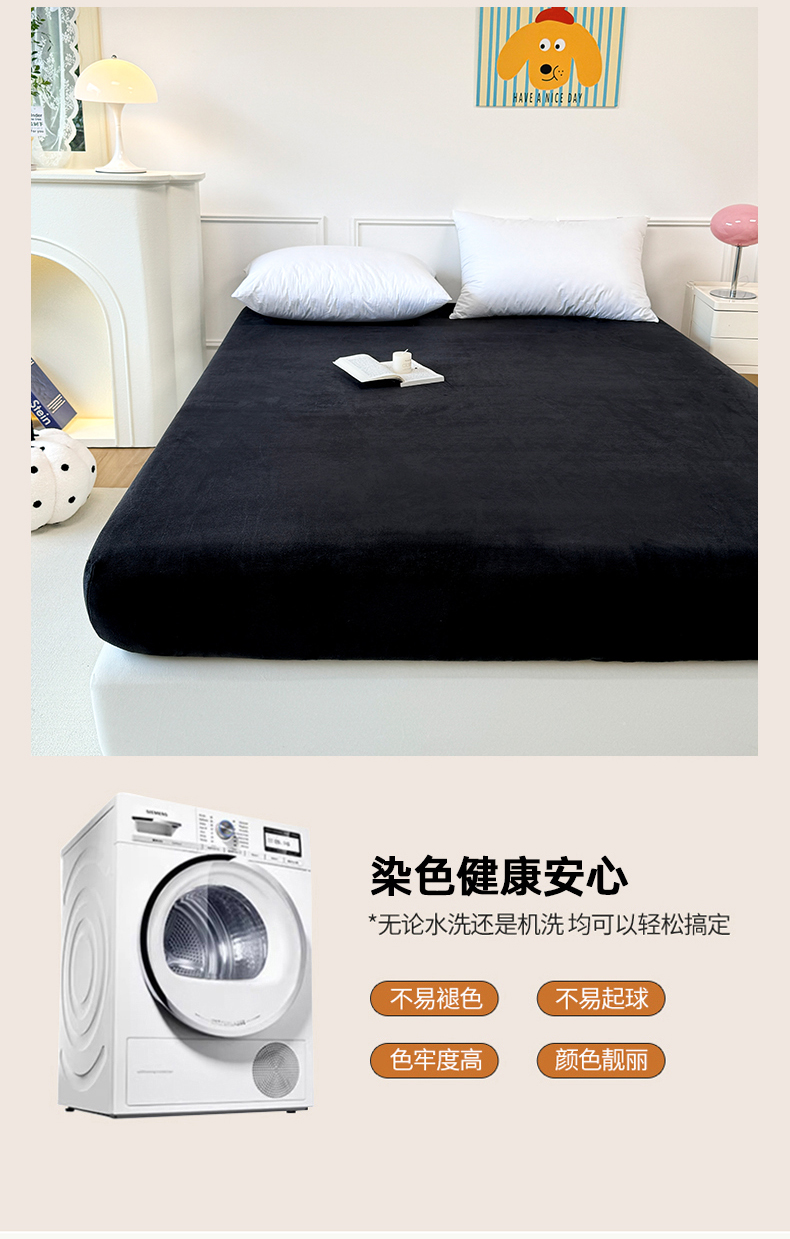 商品名称:觅妮家纺 2025新款全消光200g保暖牛奶绒纯色简约款床笠 黑灰