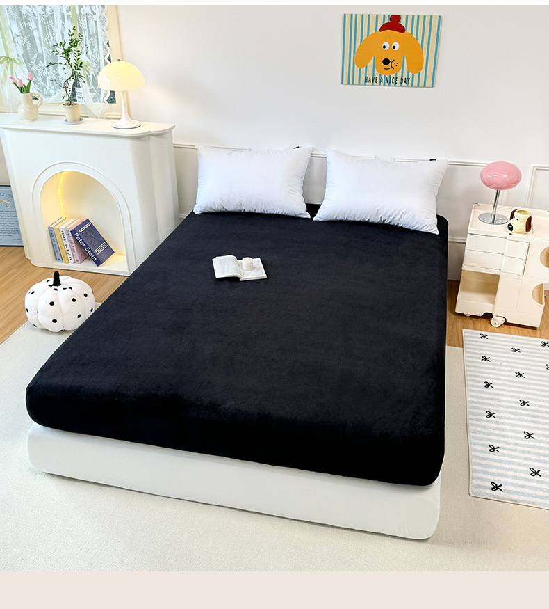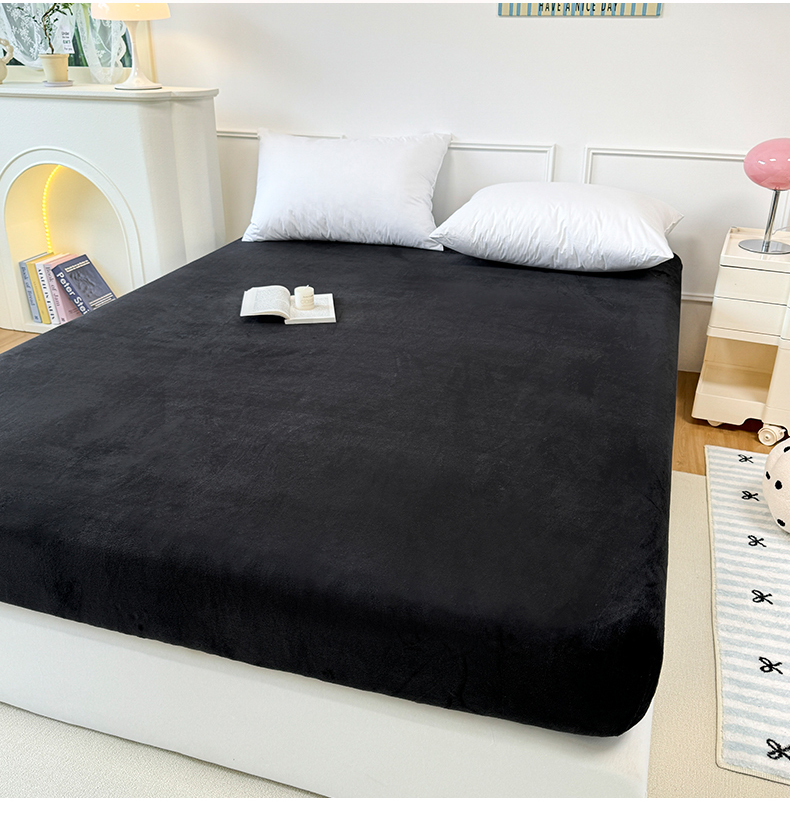 觅妮家纺 2025新款全消光200g保暖牛奶绒纯色简约款床笠 黑灰