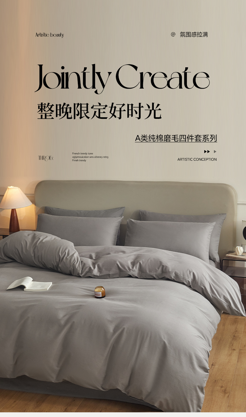商品名称:恋人优选 2024新款A类纯棉磨毛四件套 中岛灰
