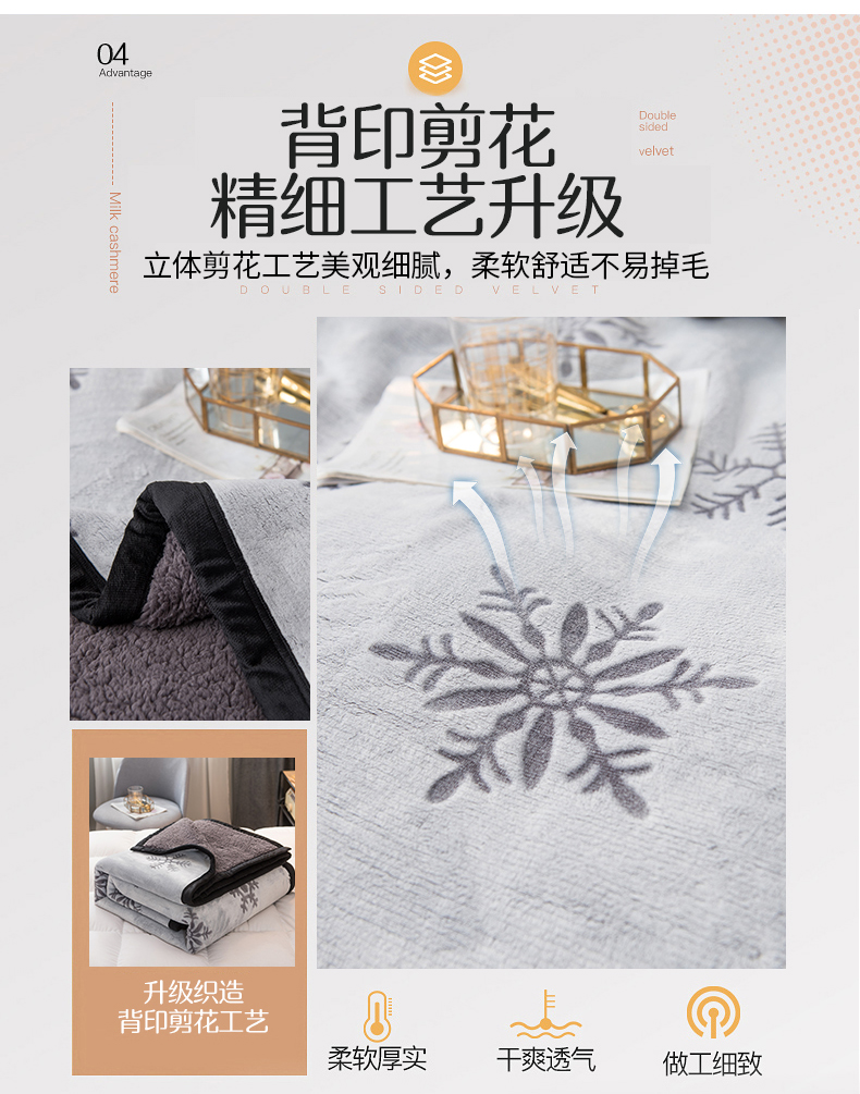 商品名称:(总)美梦莱 2022新款法莱绒羊羔绒剪花复合毛毯毯子盖毯(支持一件代发)
