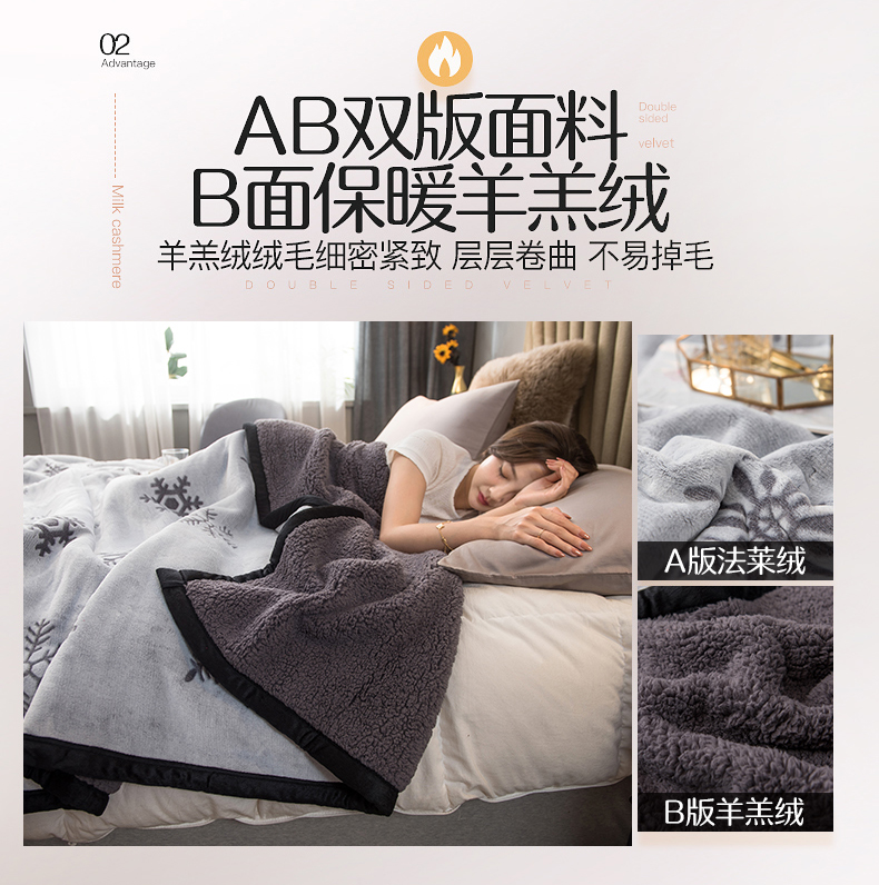 (总)美梦莱 2022新款法莱绒羊羔绒剪花复合毛毯毯子盖毯(支持一件代发)