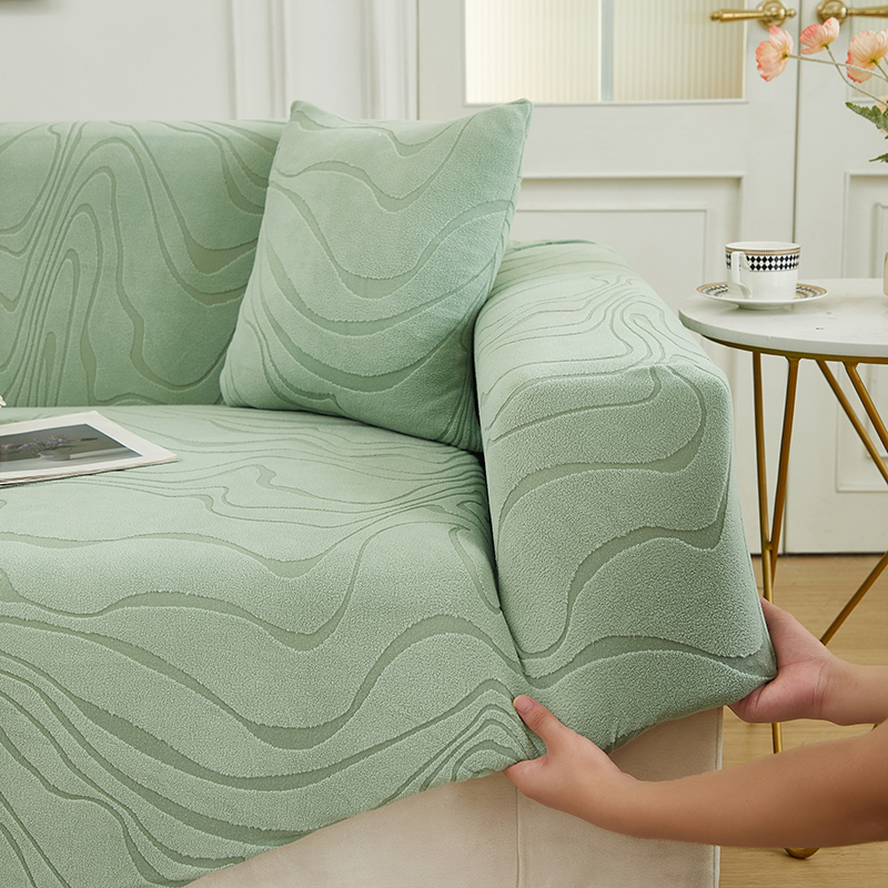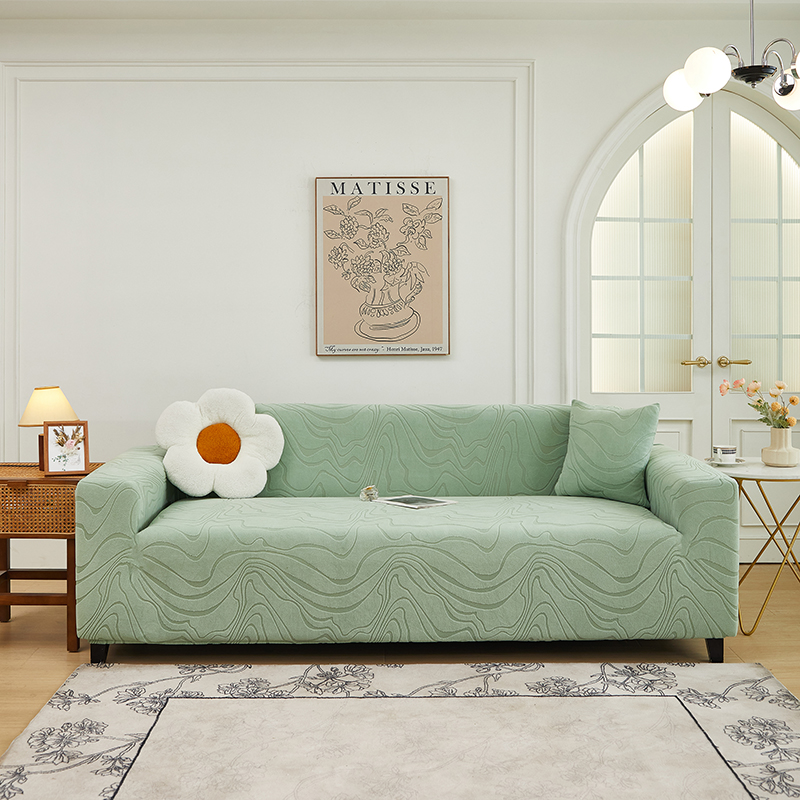 丝绮鹿 2024新款曲意松紧款沙发套(三人图) 草绿