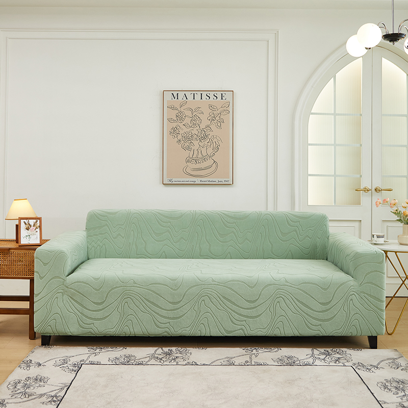 商品名称:丝绮鹿 2024新款曲意松紧款沙发套(三人图) 草绿