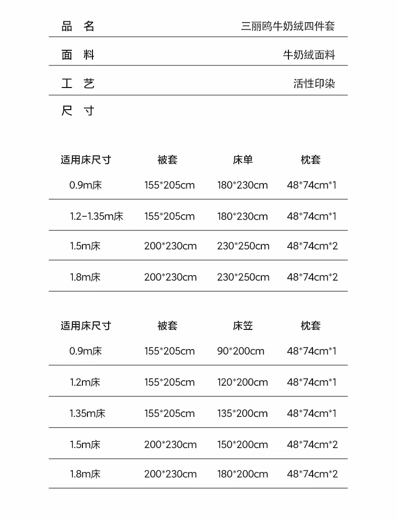 1.8m床笠款四件套 | ¥135.00 |