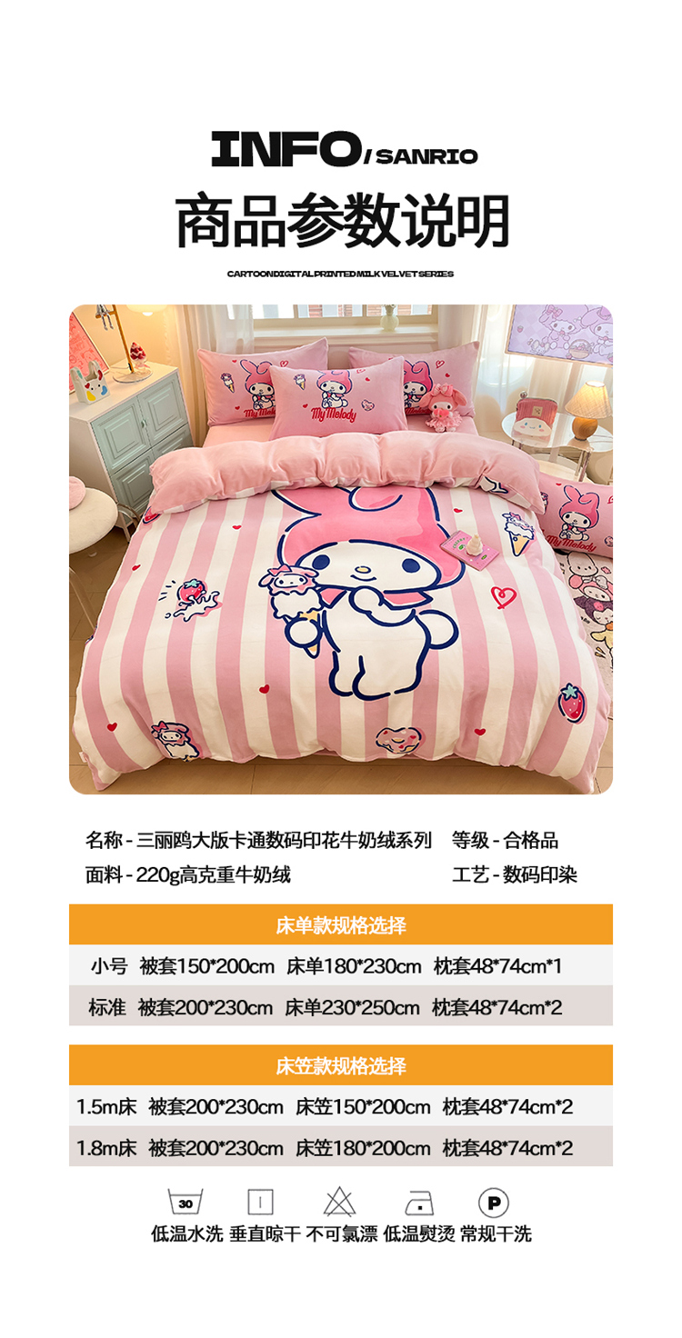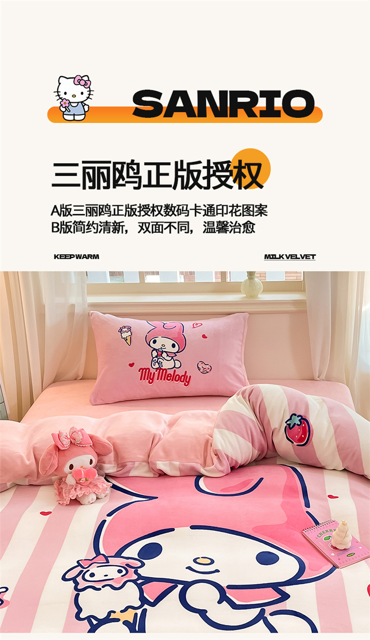 当前位置: 91家纺网 > 商品网购 > 床品套件 > 四件套 > 牛奶绒四件套 > A类母婴级库洛米美乐蒂三丽鸥正版授权卡通儿童牛奶绒双面牛奶绒四件套珊瑚绒四件套 绒大版-R草莓冰淇淋美乐蒂