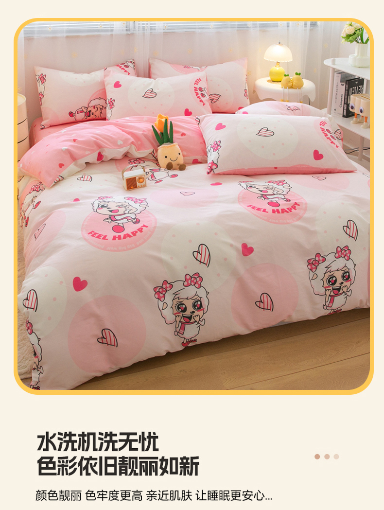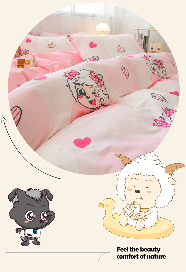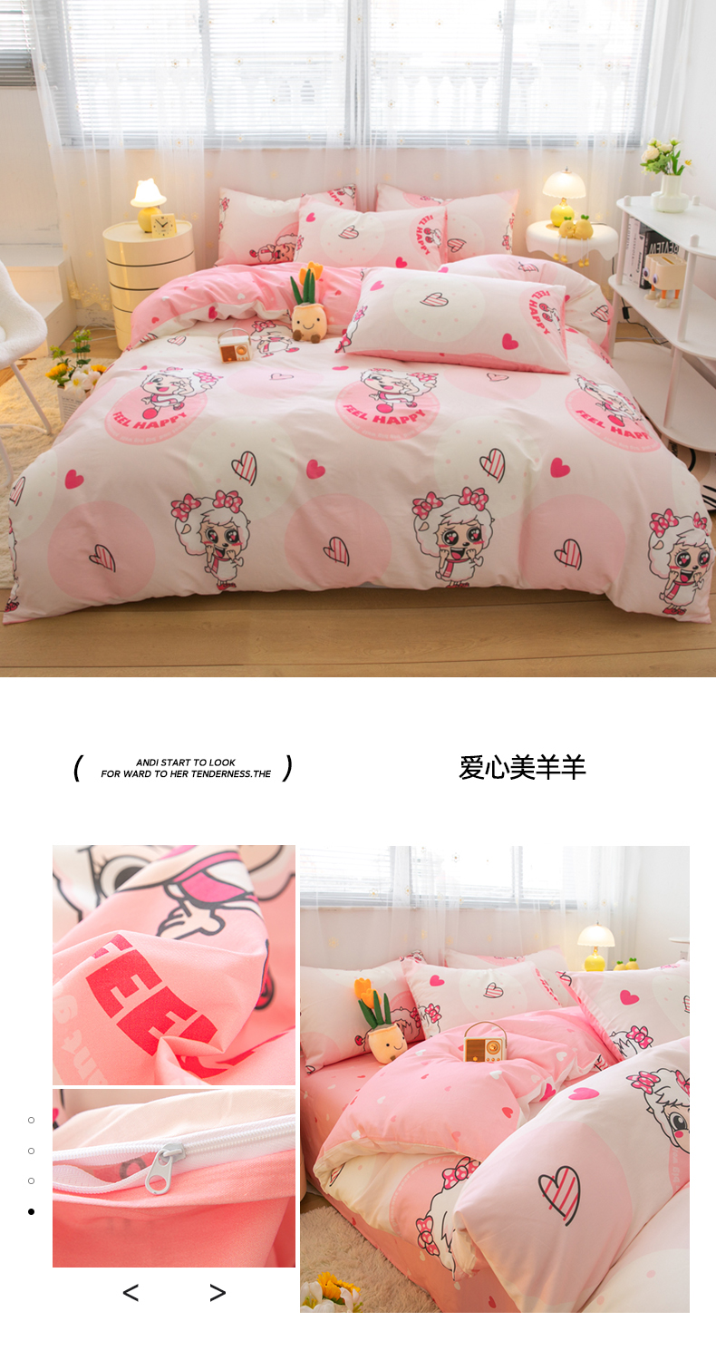 当前位置: 91家纺网 > 商品网购 > 床品套件 > 四件套 > 全棉普通四件套 > 简宜家居(朝初家纺) 2025新款40支斜纹12868纯棉全棉喜羊羊灰太狼系列四件套 爱心美羊羊