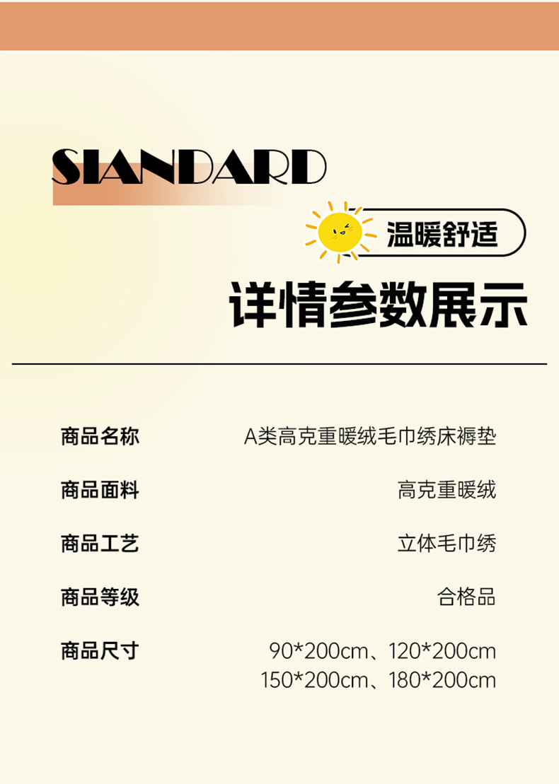 商品名称:(总)梦初语 2025新款A类高克重立体毛巾绣阳粒子床垫褥