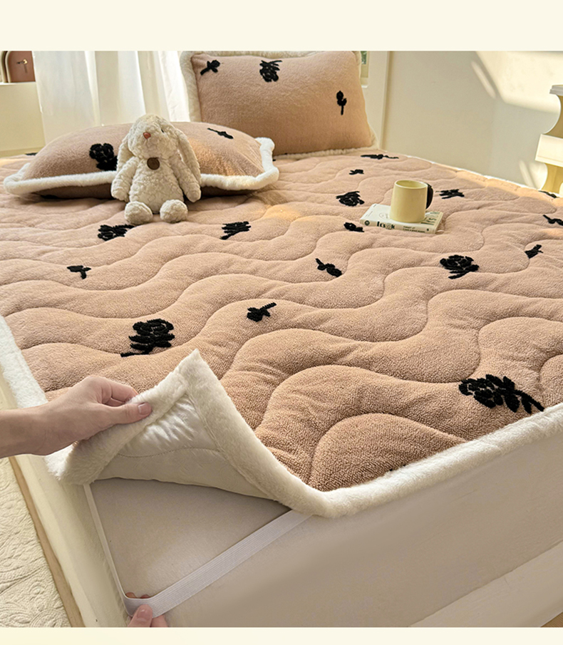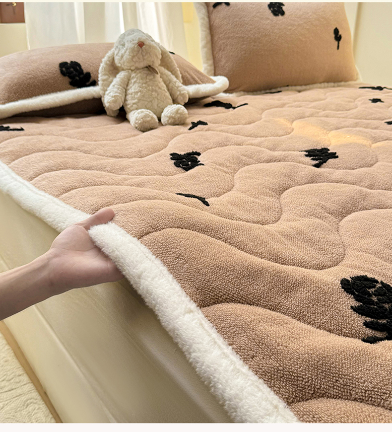 (总)梦初语 2025新款纯色牛奶绒贴布绣床垫褥冬季加绒加厚防滑学生宿舍 -直播爆款(面料17,猫咪-灰,猫咪-兰,维尼-咖,维尼-棕,小煤球-绿,小煤球-玉