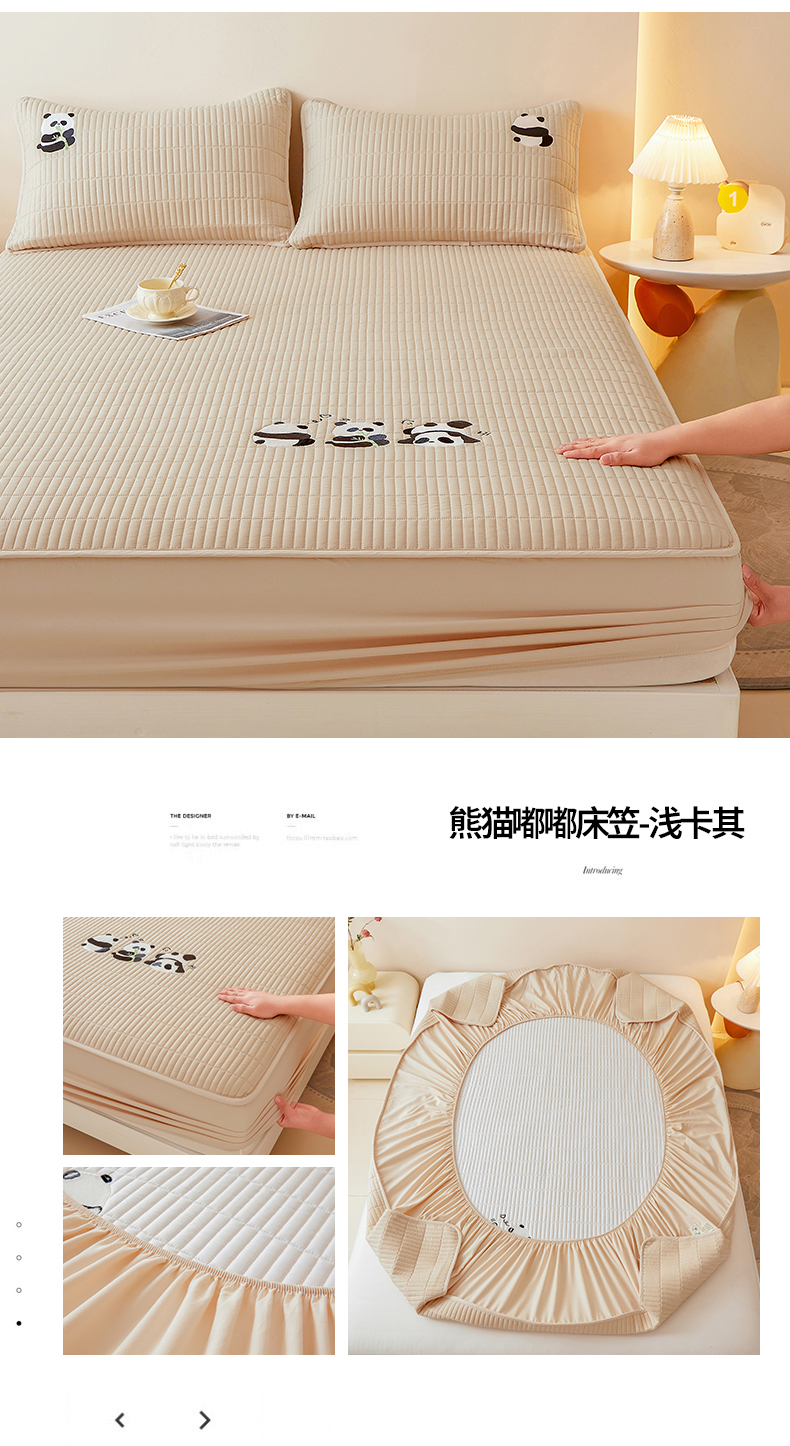 • 91家纺网 家纺一手货源 找家纺 雅萱家纺 2025新款A类亲肤绣花大豆床笠-熊猫嘟嘟 防水熊猫嘟嘟床笠-浅卡其