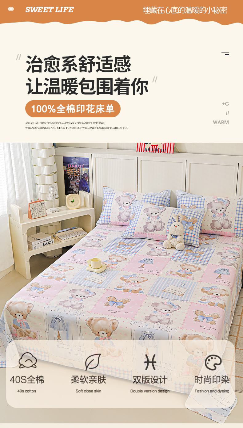 商品名称:金鑫汇家纺 2025新款全棉印花单床单 熊熊精灵