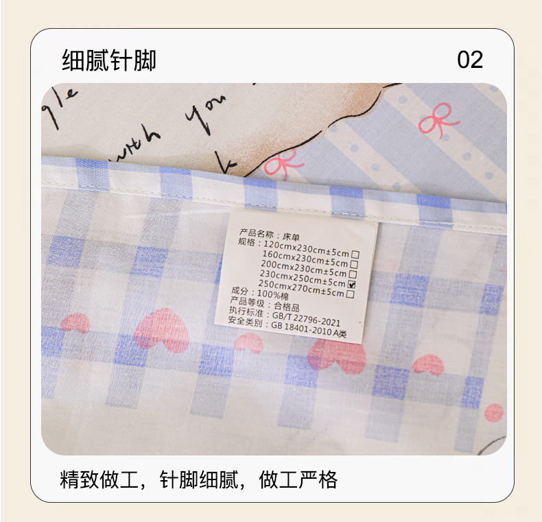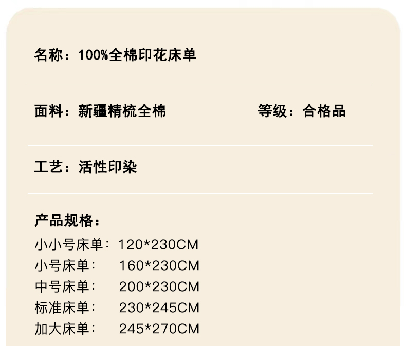 (总)金鑫汇家纺 2026新款全棉印花小清新单品床单系列-可露丽,海盐可露丽,浅咖可露丽,浅绿可露丽,月下花影-桔,月下花影-蓝,月下花影-绿
