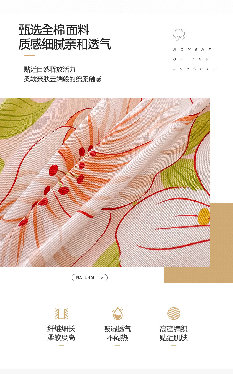 (总)金鑫汇家纺 2026新款全棉印花小清新四件套系列-可露丽,海盐可露丽,浅咖可露丽,浅绿可露丽,月下花影-桔,月下花影-蓝,月下花影-绿
