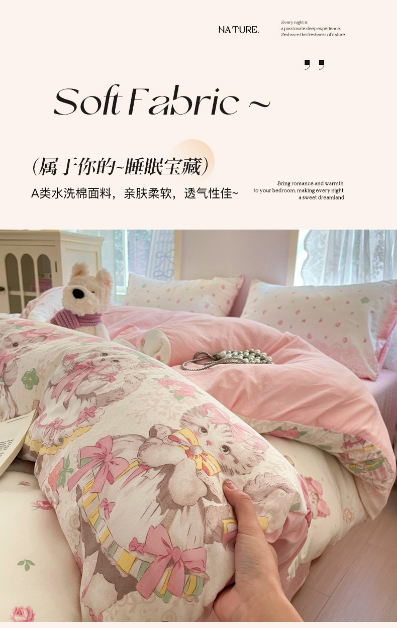 当前位置: 91家纺网 > 商品网购 > 床品套件 > 四件套 > 水洗棉四件套 > 雨帆家纺 2025新款水洗棉印花四件套 小公主