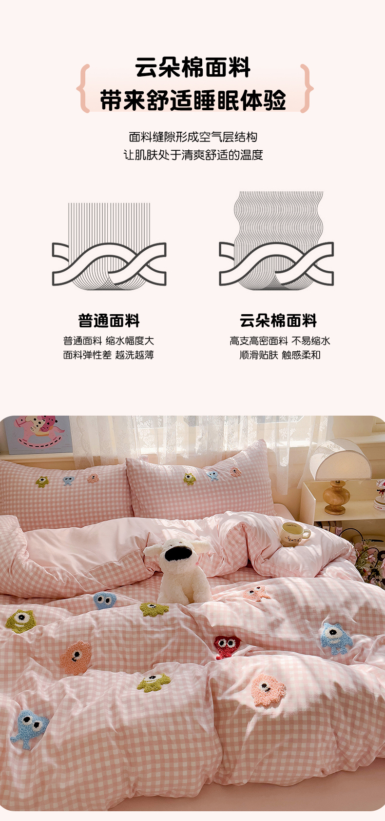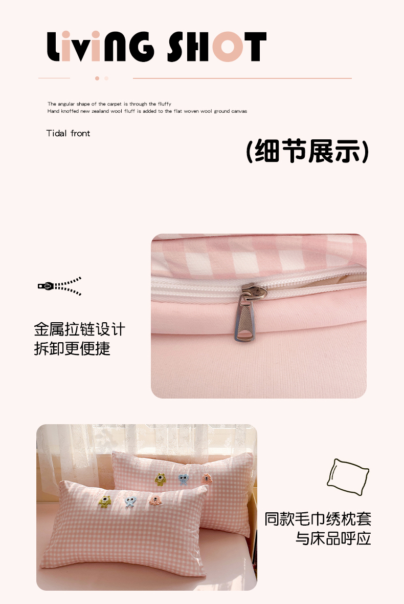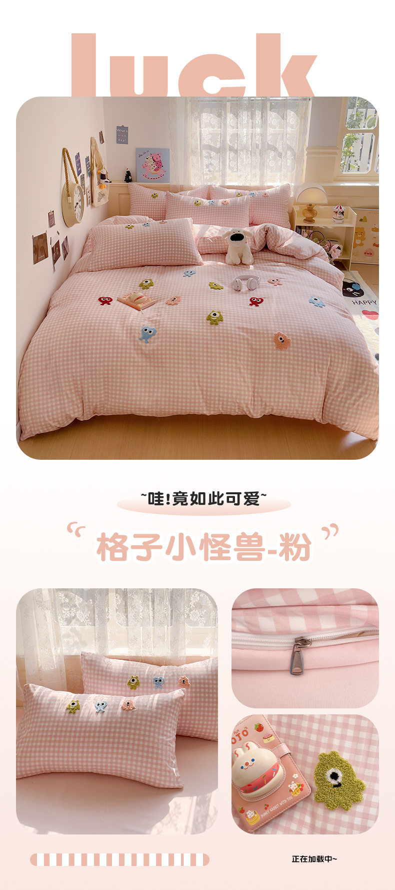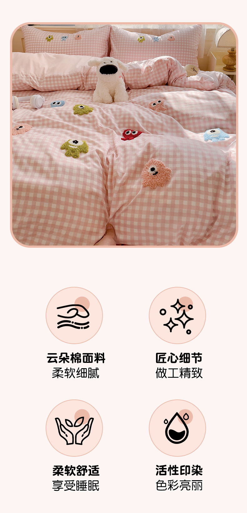 当前位置: 91家纺网 > 商品网购 > 床品套件 > 四件套 > 其它四件套 > 梦之岛 2025新款多巴胺ins云朵棉小怪兽可爱毛巾绣四件套 格子小怪兽-粉
