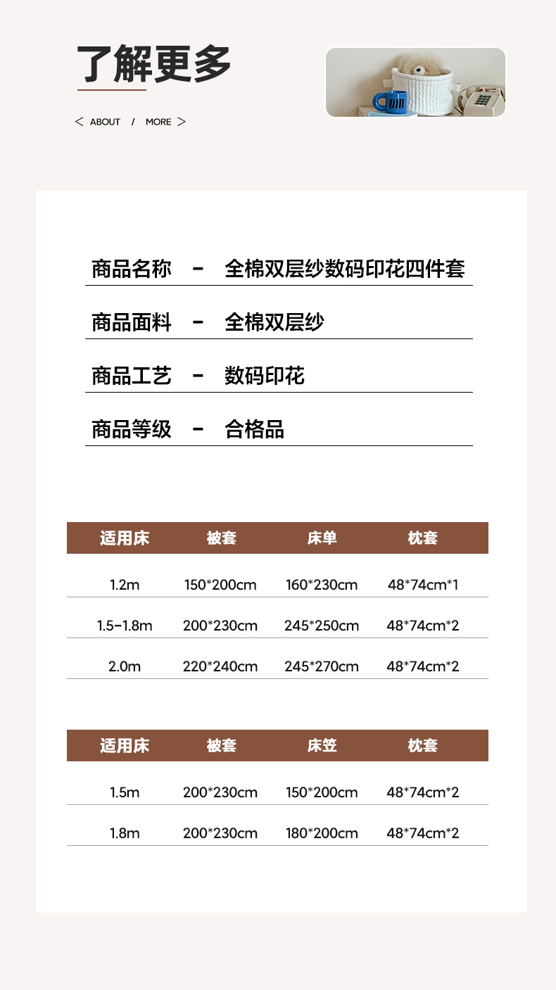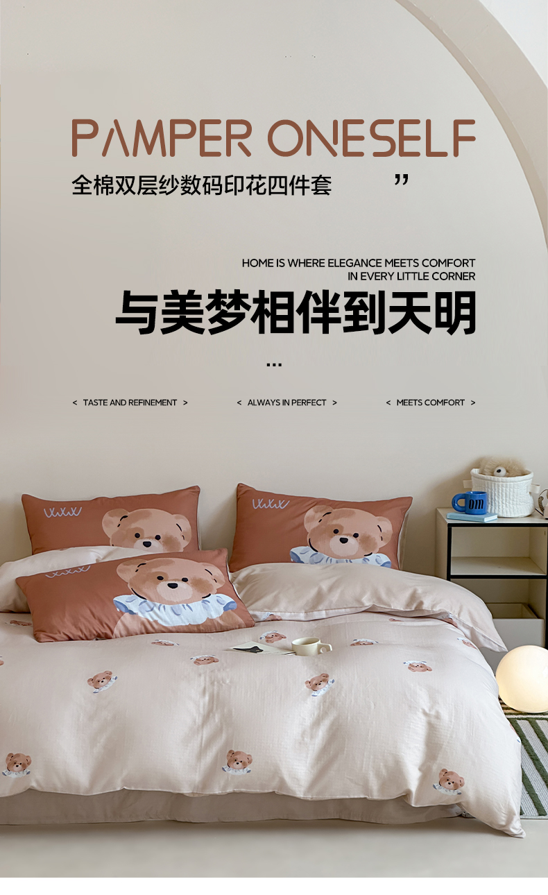 当前位置: 91家纺网 > 商品网购 > 床品套件 > 四件套 > 全棉普通四件套 > 卡巴伦家纺 2025新款ins韩风A类双层纱数码印花四件套【全网控价(折后券后)不低于标准278/加大298/小号238元】 软绵绵迷你熊
