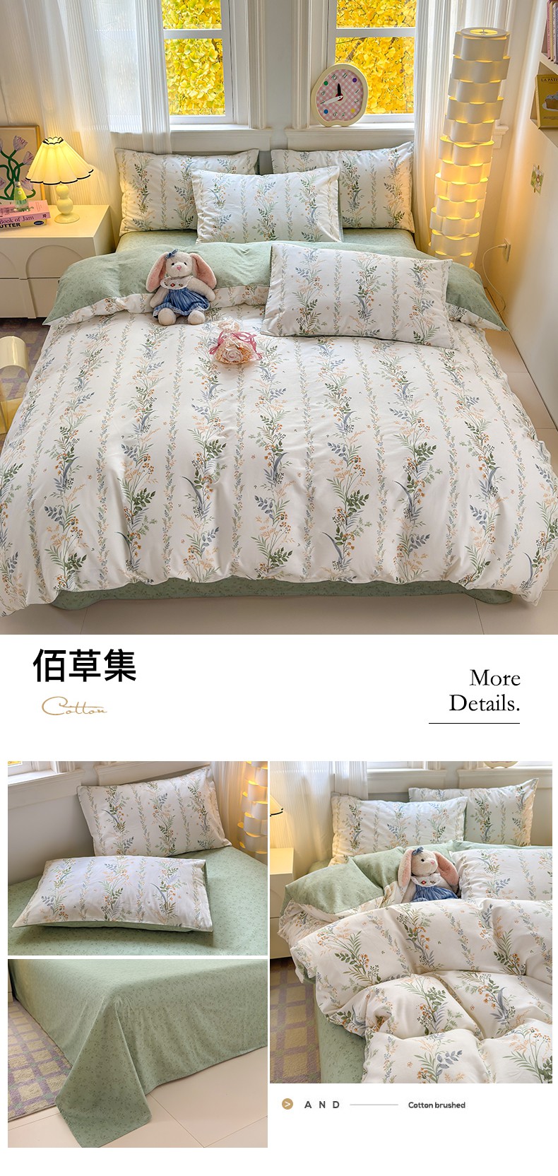 当前位置: 91家纺网 > 商品网购 > 床品套件 > 四件套 > 全棉普通四件套 > 清雅福 2025全棉13372小清新四件套和单品早春系列第一批-四件套 禾春序