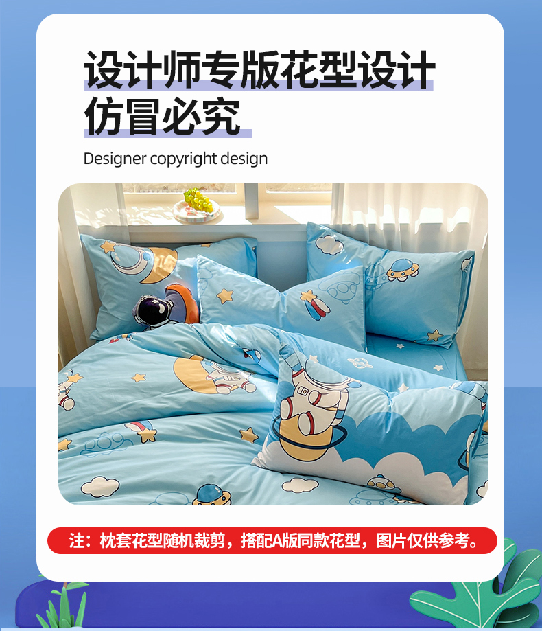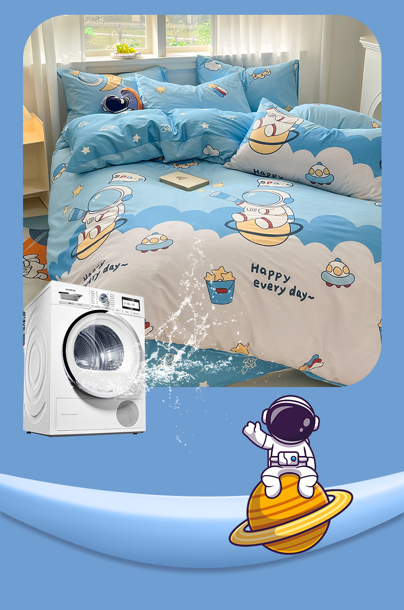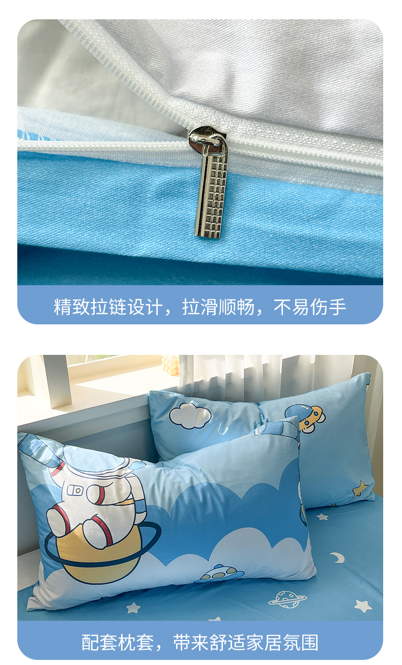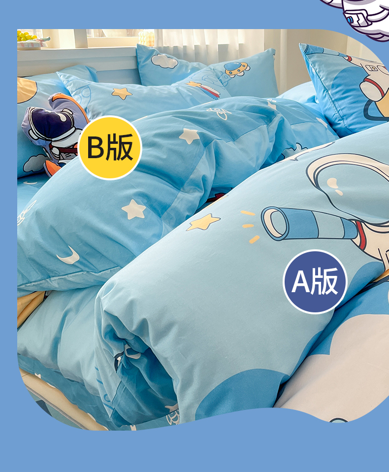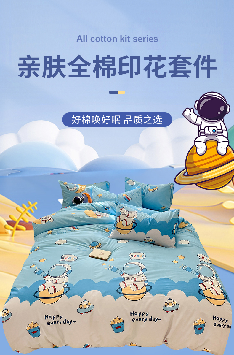 当前位置: 91家纺网 > 商品网购 > 床品套件 > 四件套 > 全棉普通四件套 > 孩子王家纺 2025新款亲肤活性小版纯棉专版太空人卡通学生儿童宿舍四件套系列 星际太空