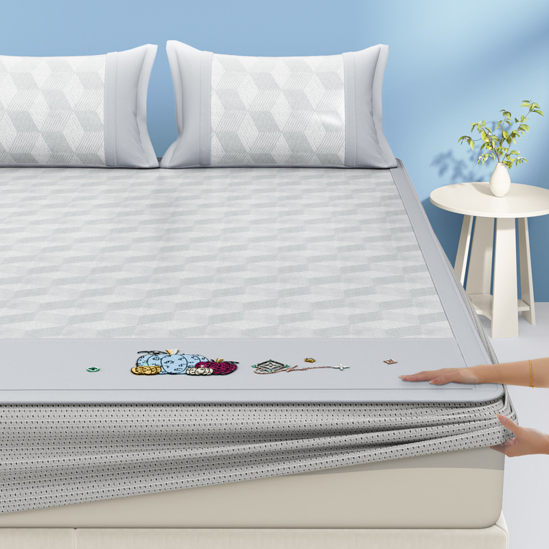 商品名称:阿牛席业 2025新款冰柔凉席系列-冰立方系列+海之韵系列 冰立方-灰床笠