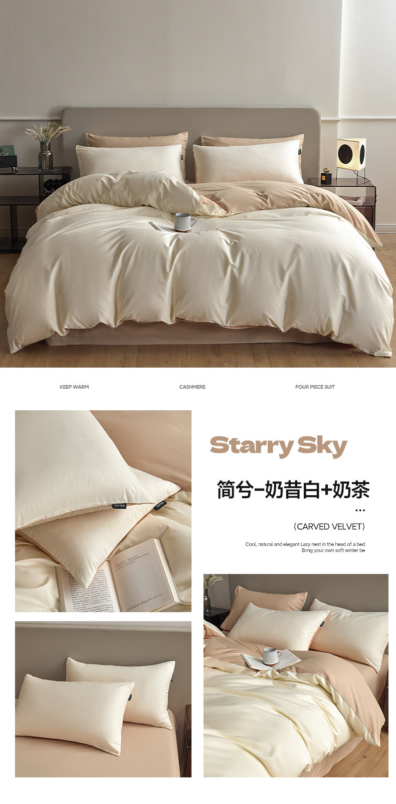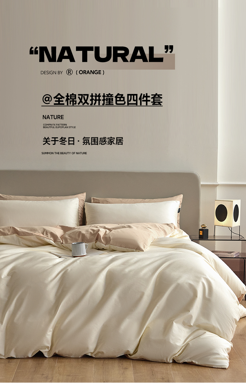 当前位置: 91家纺网 > 商品网购 > 床品套件 > 四件套 > 全棉普通四件套 > 佳汐蓝家纺 2025新款全棉纯色双拼-简兮系列四件套 简兮-奶昔白+奶茶