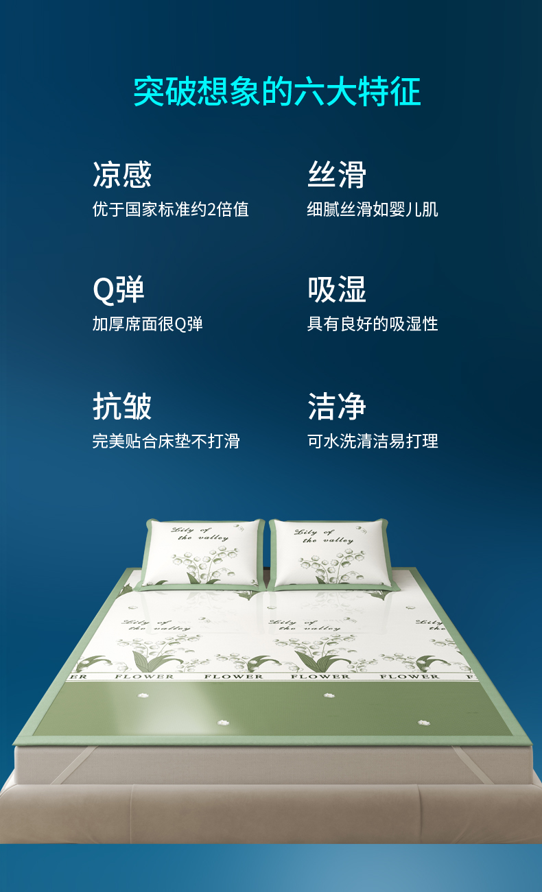 商品名称:阿牛席业 2025新款凉感印花软席系列二条席款 铃兰花开