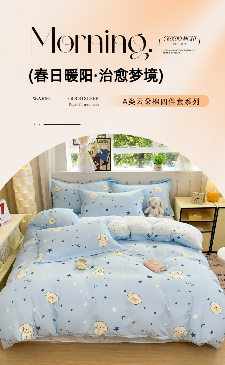 当前位置: 91家纺网 > 商品网购 > 床品套件 > 四件套 > 全棉普通四件套 > 宝薇 2025新款超柔云朵棉四件套 晚安宝贝