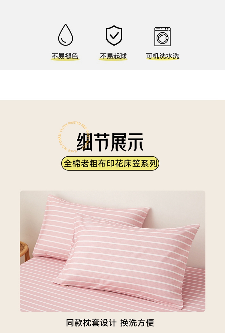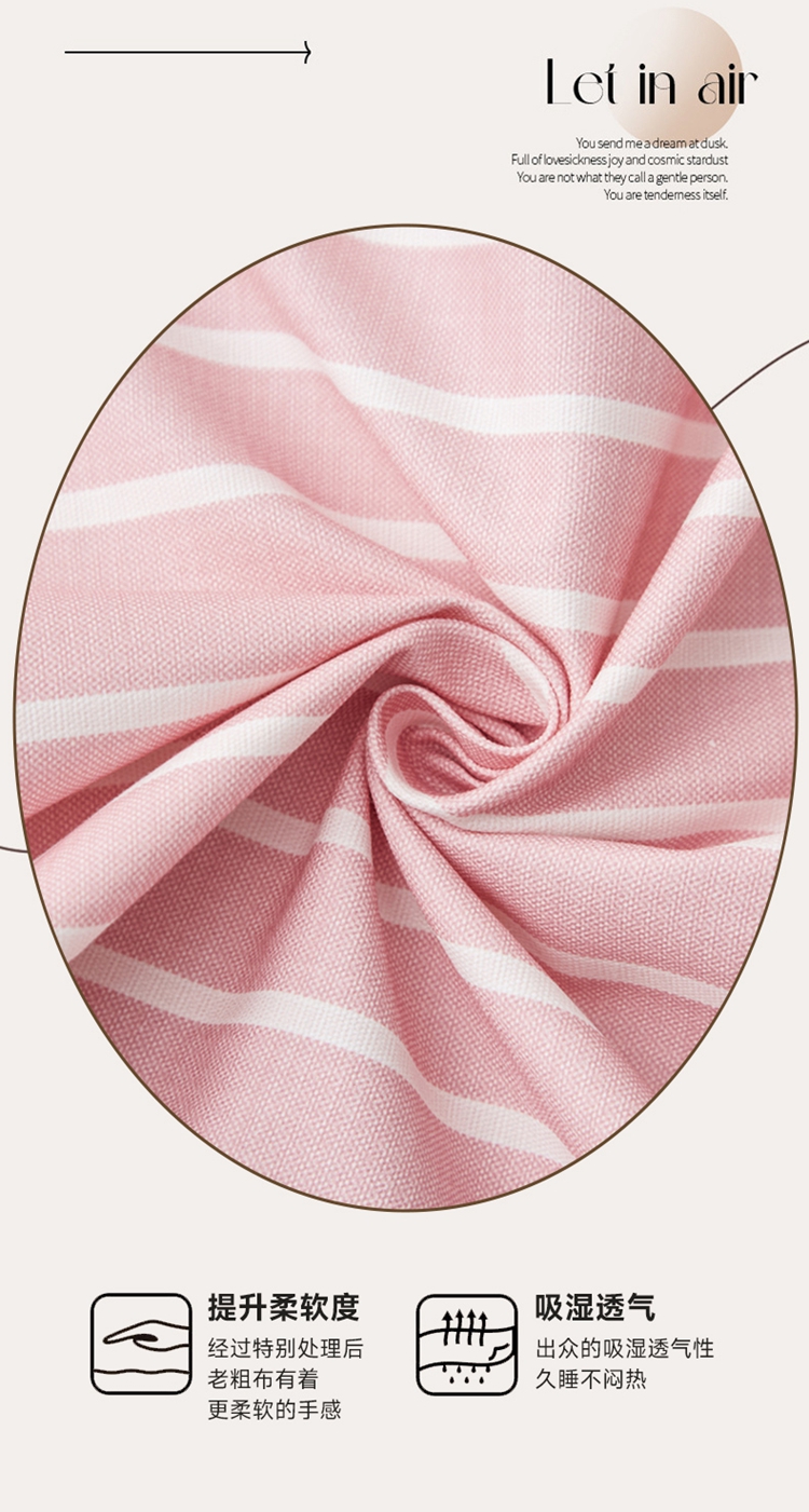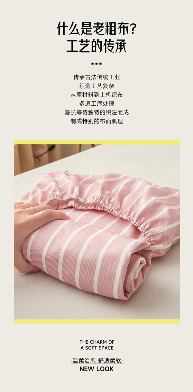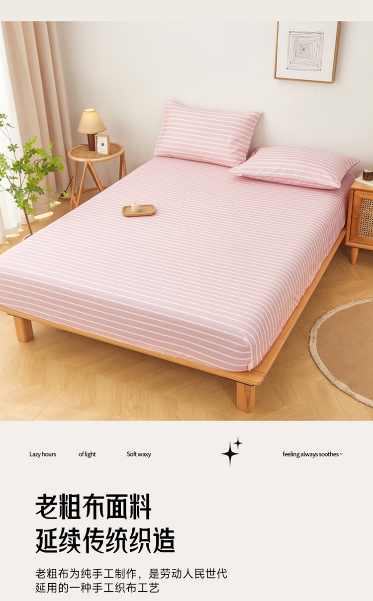 商品名称:慕梵家居 2025新款全棉老粗布床笠系列 全棉老粗布-宽条粉