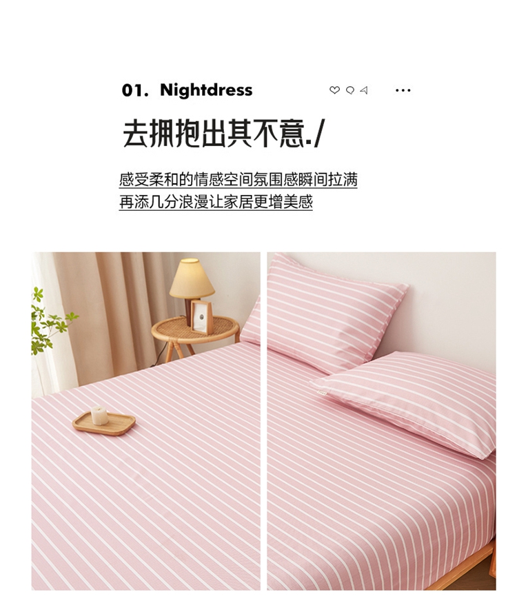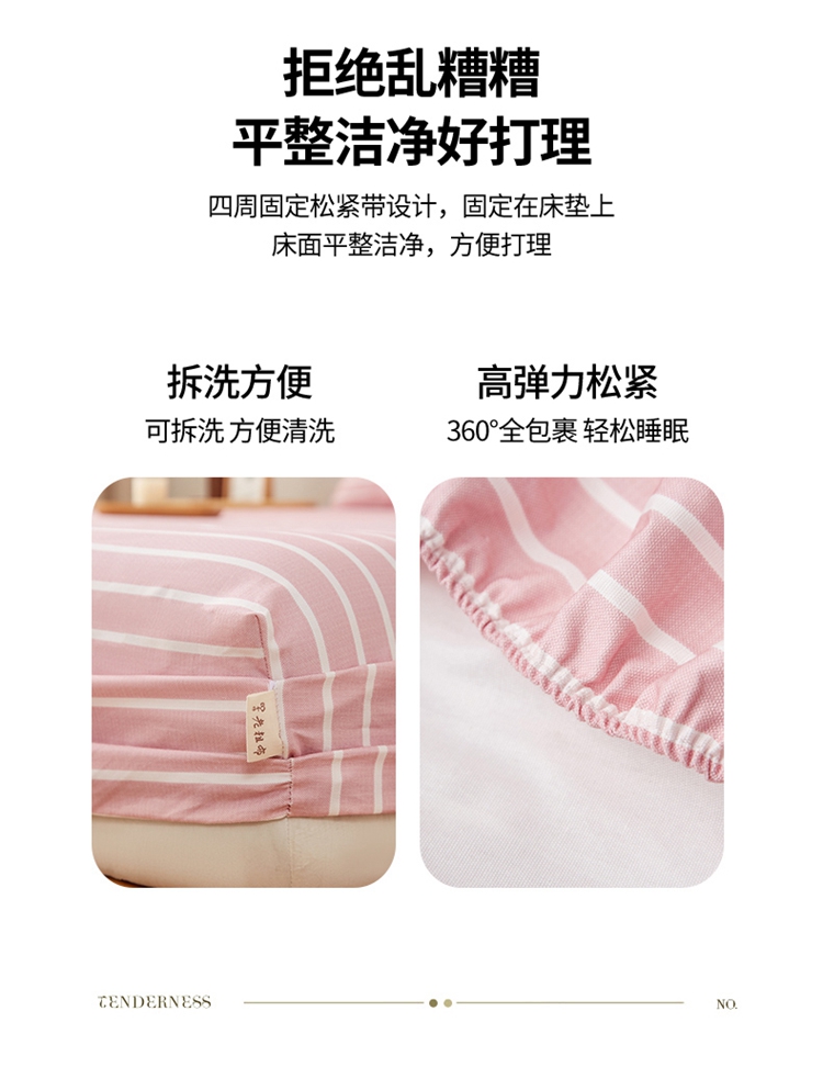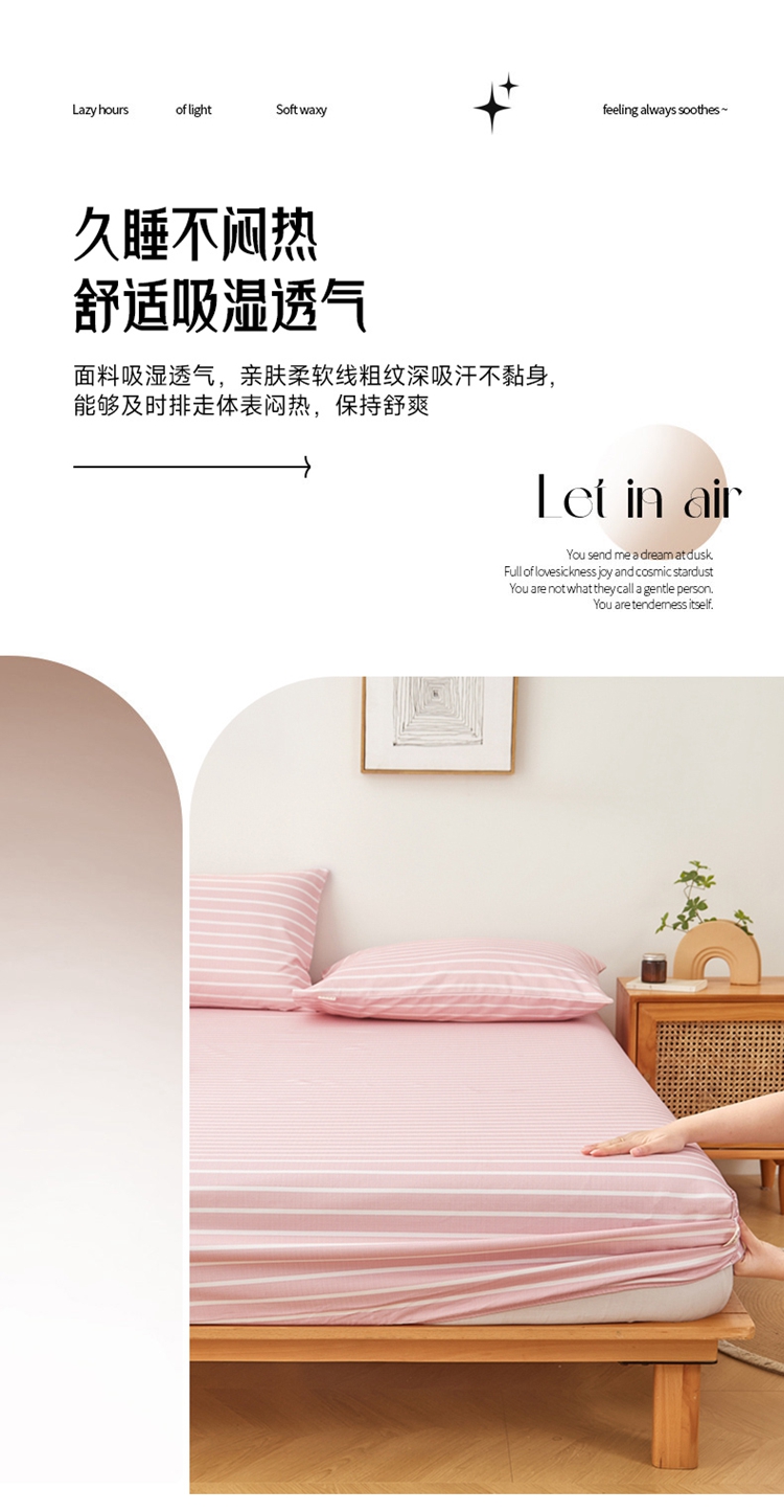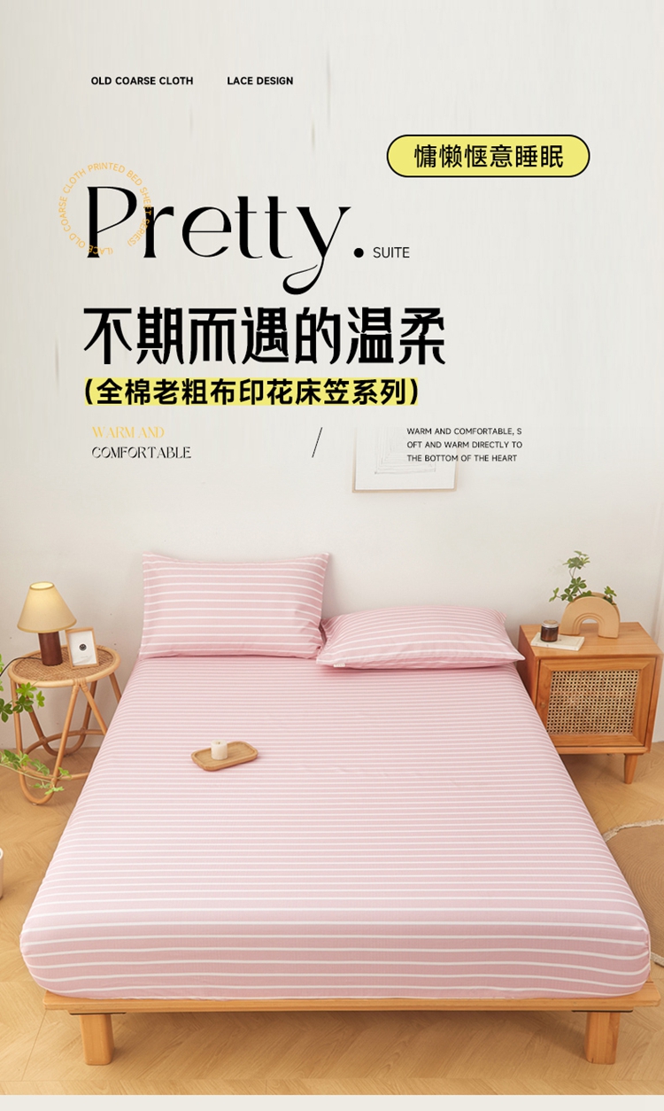 商品名称:慕梵家居 2025新款全棉老粗布床笠系列 全棉老粗布-宽条粉