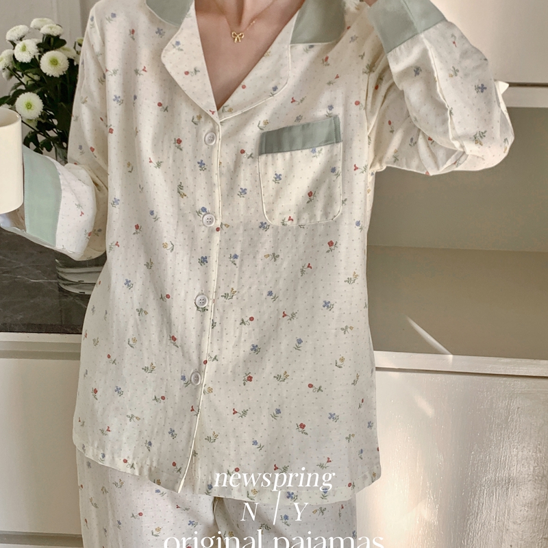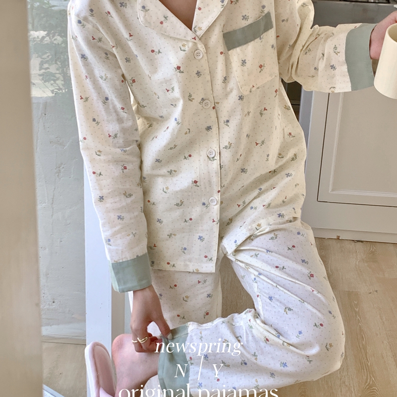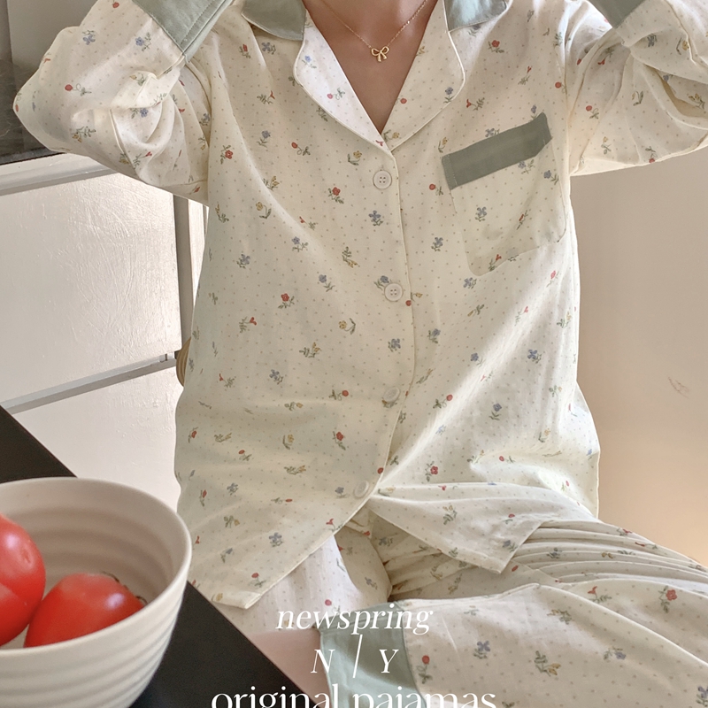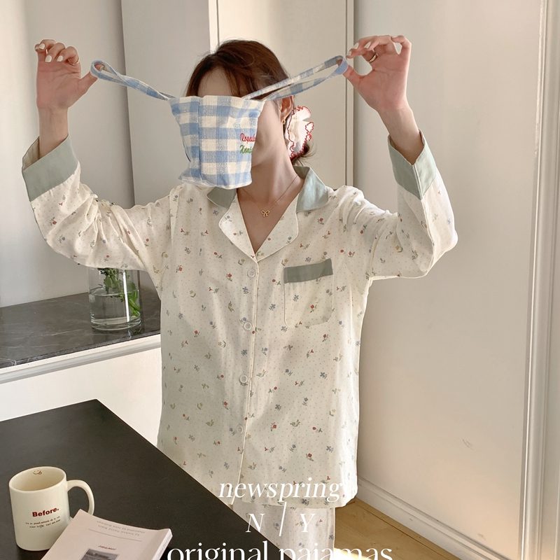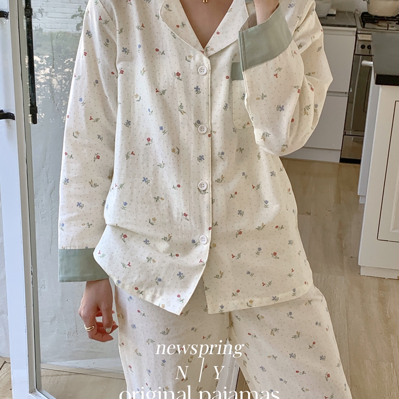(总)纽约生活 2025新款绉布圆领开扣长袖长裤(会员-5),波比熊,黑碎花猫咪,蝴蝶结粉熊,花花狗,蓝碎花,塞纳花房