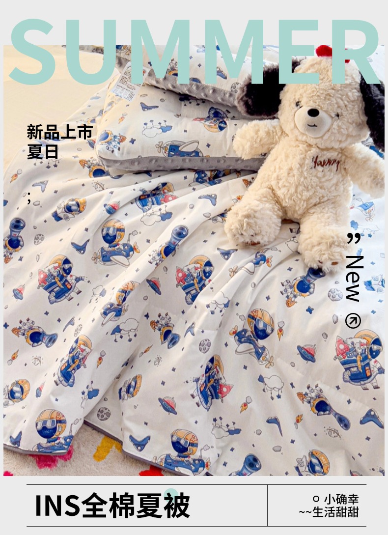 商品名称:十九色 2025新款全棉13372ins儿童夏被 星际旅行