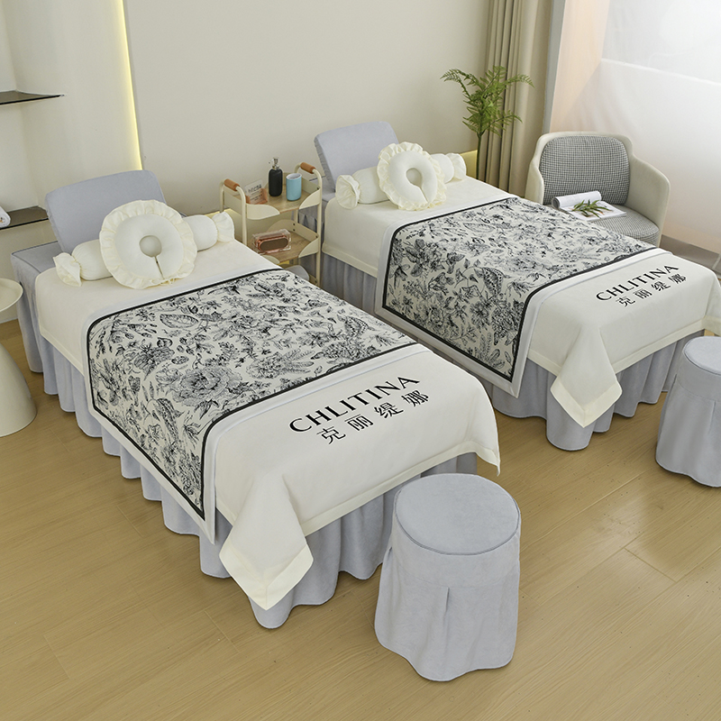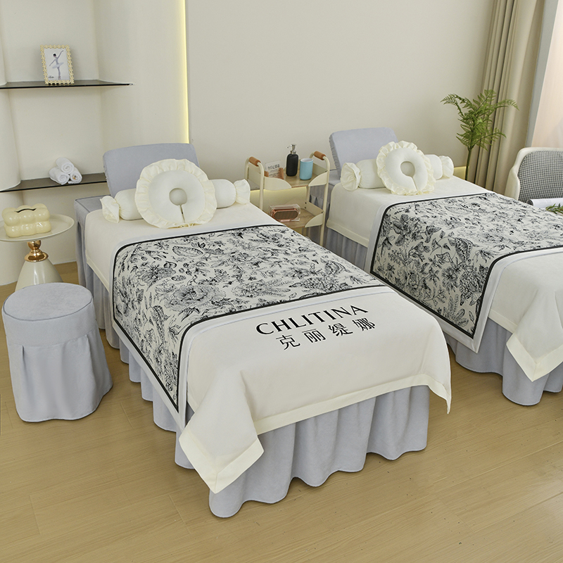 当前位置: 91家纺网 > 商品网购 > 床品套件 > 四件套 > 贡缎全棉四件套 > 不打烊家纺 2025新款贡棉美 容床罩印花款-花千城(支持logo定制)花千城米白色拼玉色