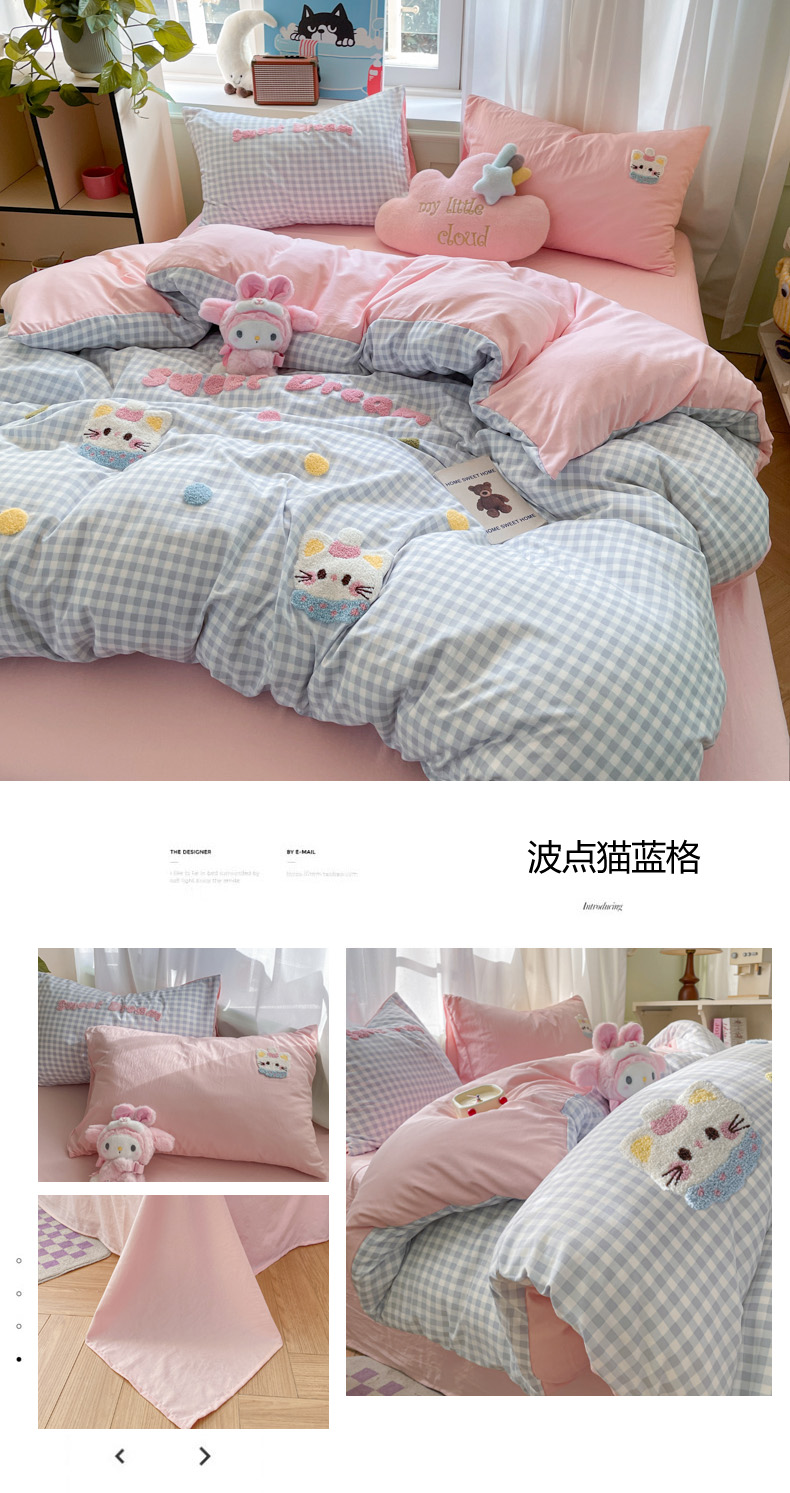 当前位置: 91家纺网 > 商品网购 > 床品套件 > 四件套 > 水洗棉四件套 > 雨帆家纺 2025新款水洗棉毛巾绣四件套 波点猫蓝格