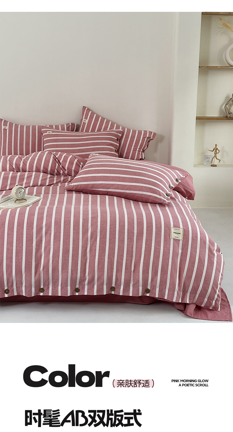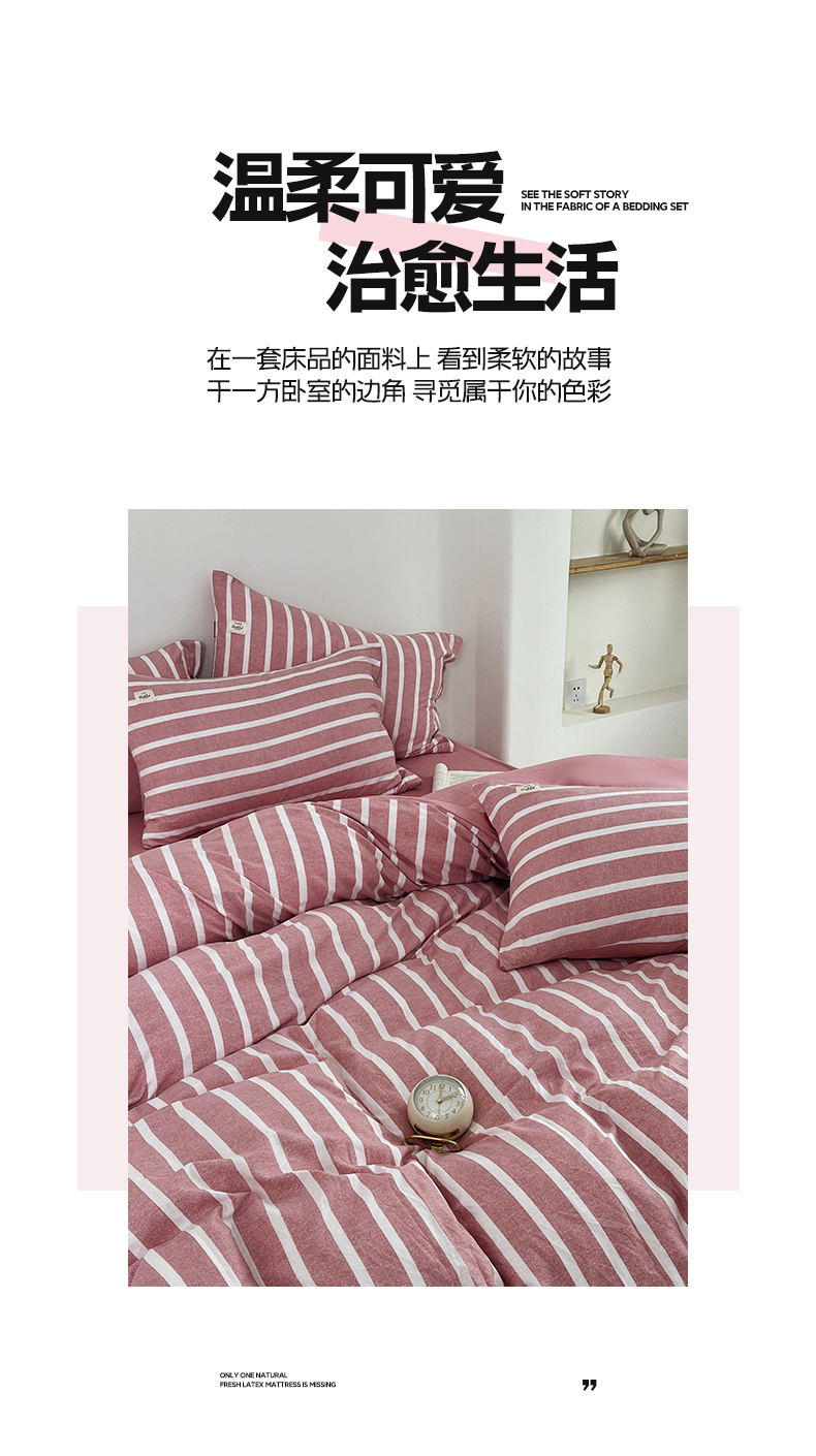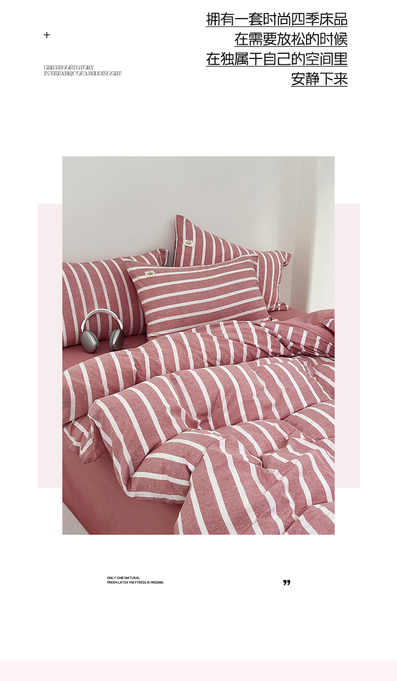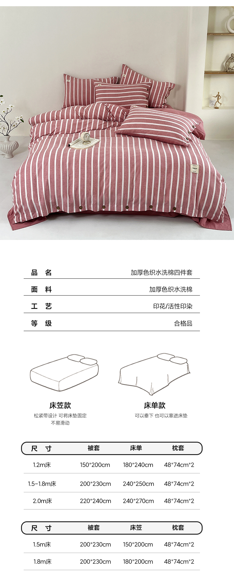 商品名称:睡美美 2025新款加厚色织水洗棉印染条纹四件套 复古红条