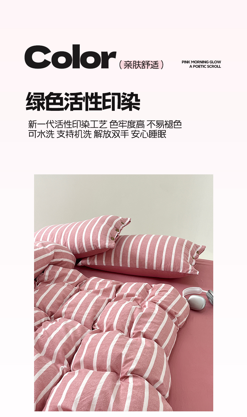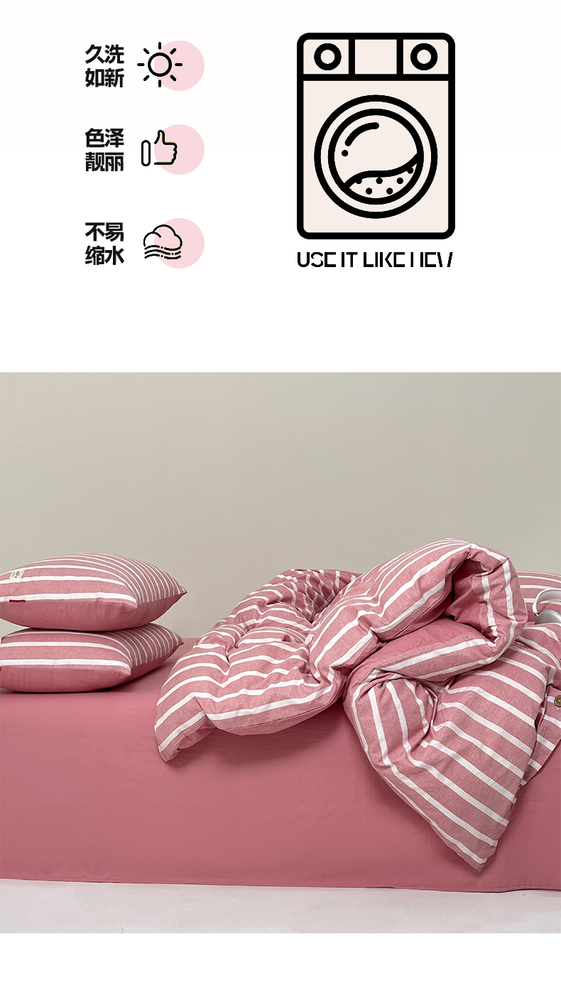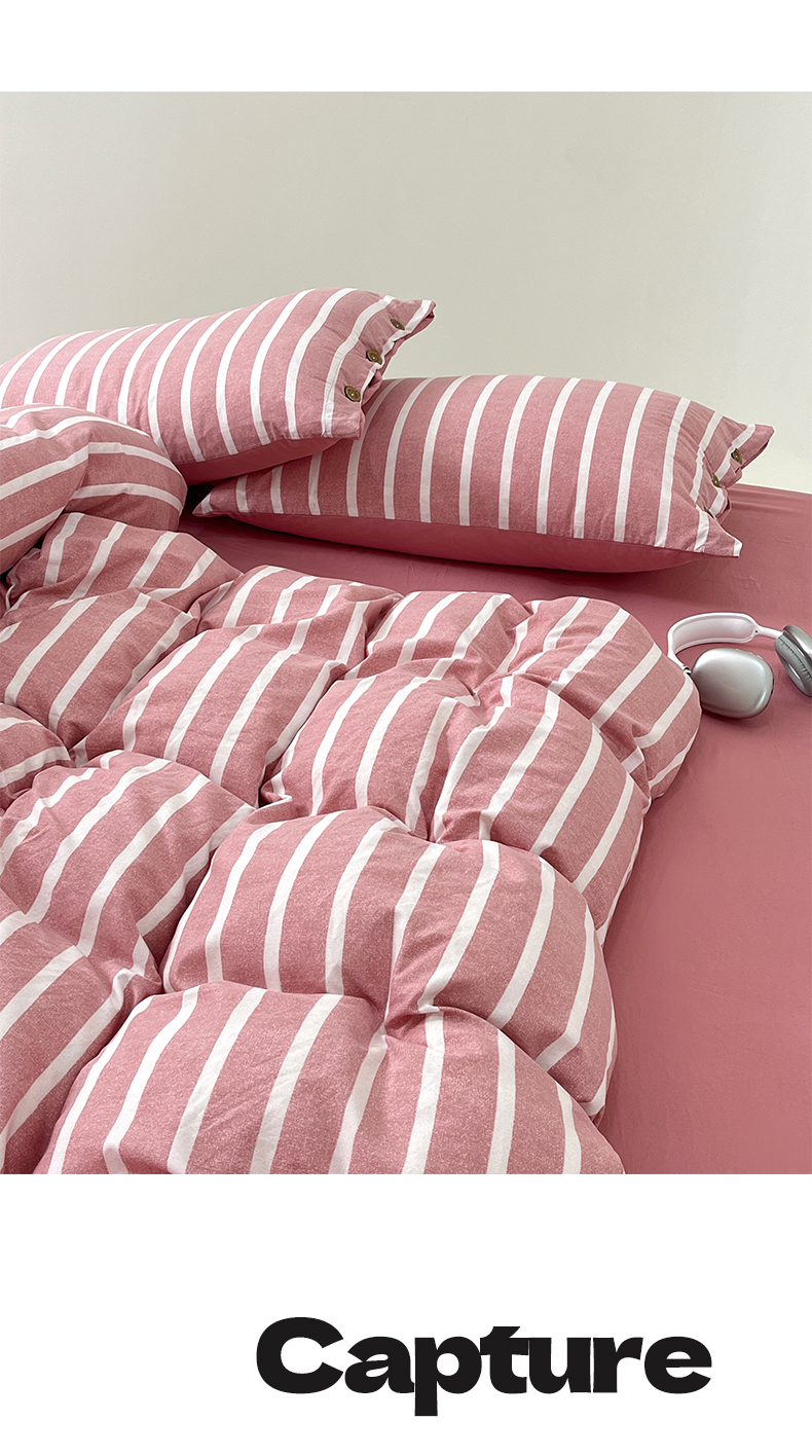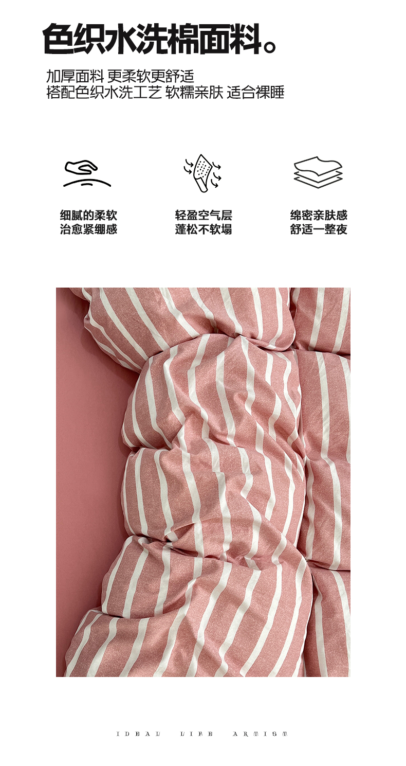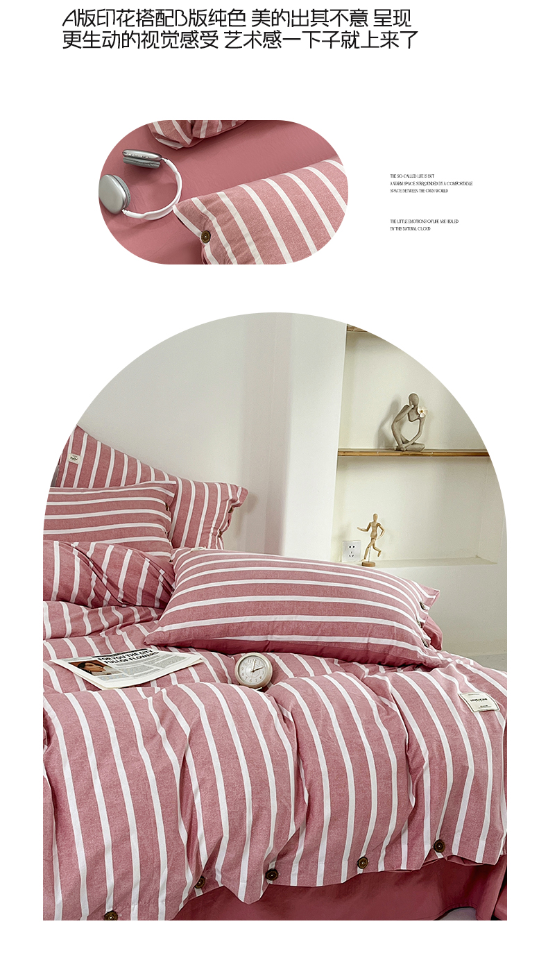 商品名称:睡美美 2025新款加厚色织水洗棉印染条纹四件套 复古红条