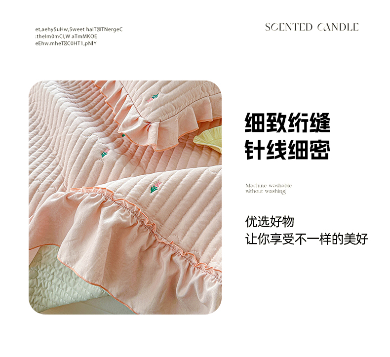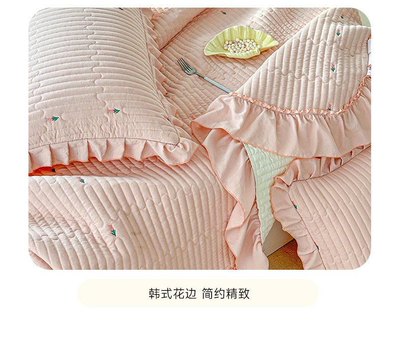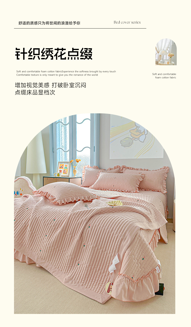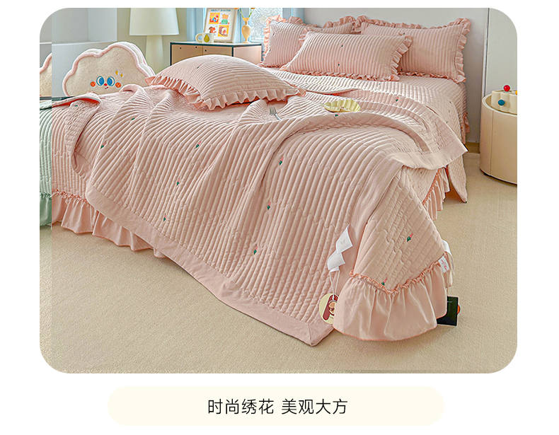 • 91家纺网 家纺一手货源 找家纺 源舜家纺 2025新款无弹针织绣花小清新床盖夏被四件套 玉色