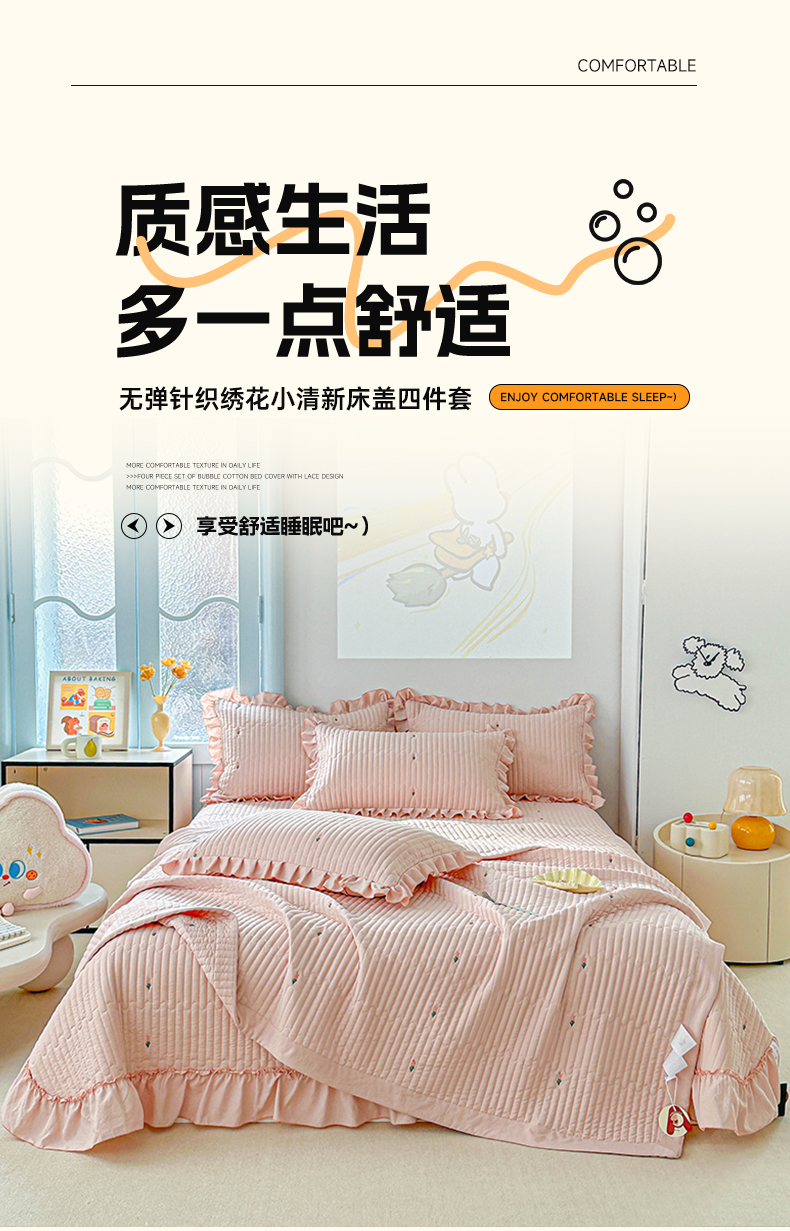 • 91家纺网 家纺一手货源 找家纺 源舜家纺 2025新款无弹针织绣花小清新床盖夏被四件套 玉色 91家纺网 家纺一手货源 找家纺 源舜家纺 2025新款无弹针织绣花小清新床盖夏被四件套 玉色
