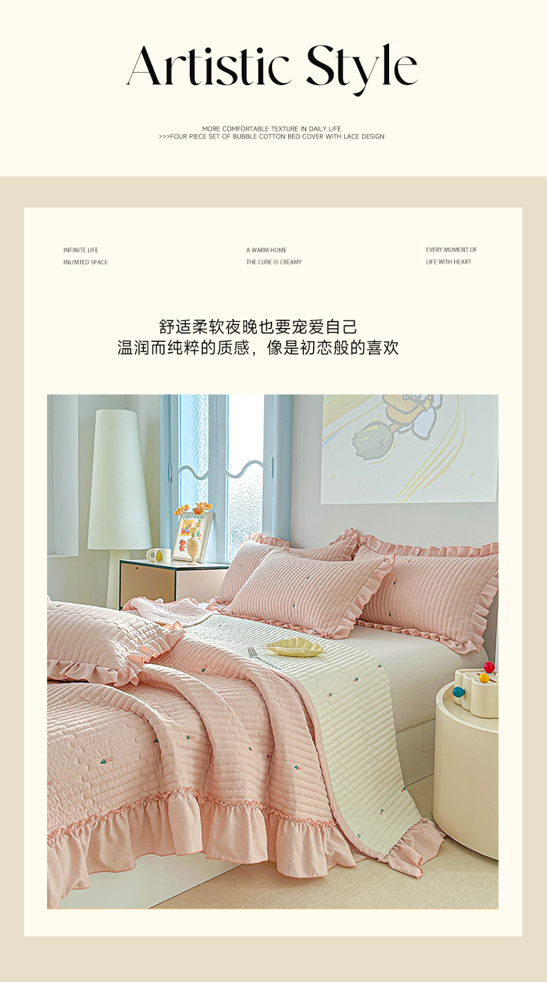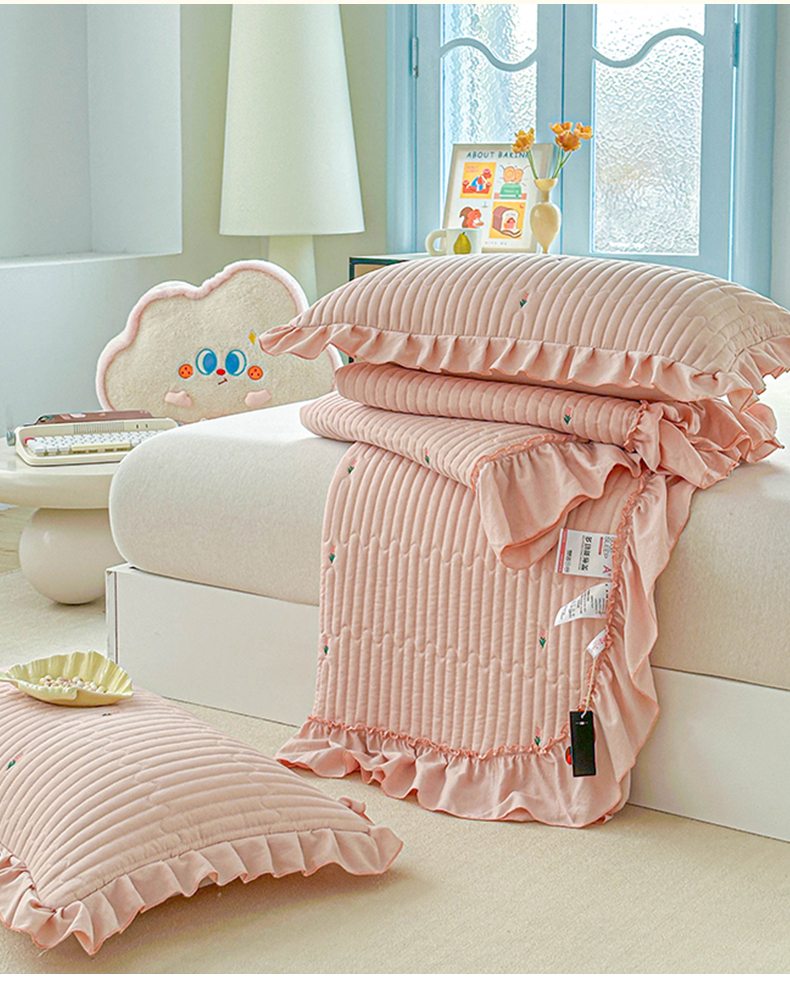 • 91家纺网 家纺一手货源 找家纺 (总)源舜家纺 2026新款全棉双层纱棉花边榻榻米炕盖款,组合图仅供参考,波点粉,波点灰,波点绿,波点米,波点杏,波点紫