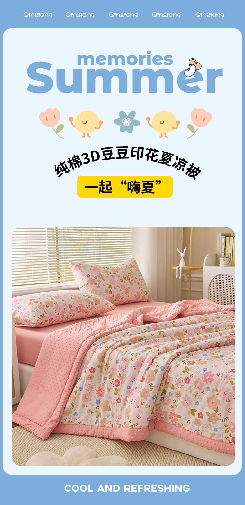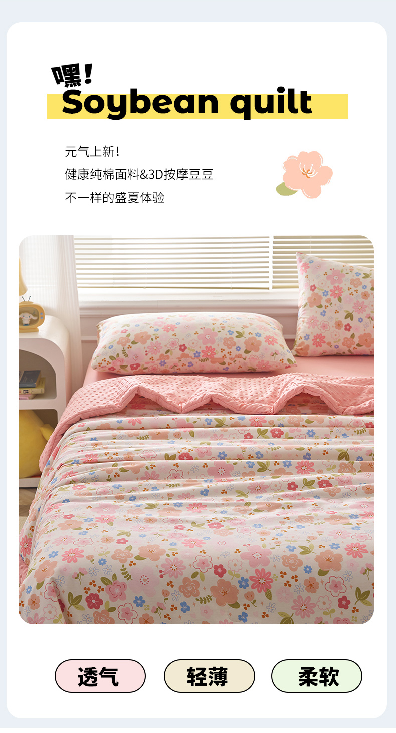 商品名称:暖阳 2025年新款纯棉豆豆夏被夏凉被被子被芯 豆豆-倾心之恋